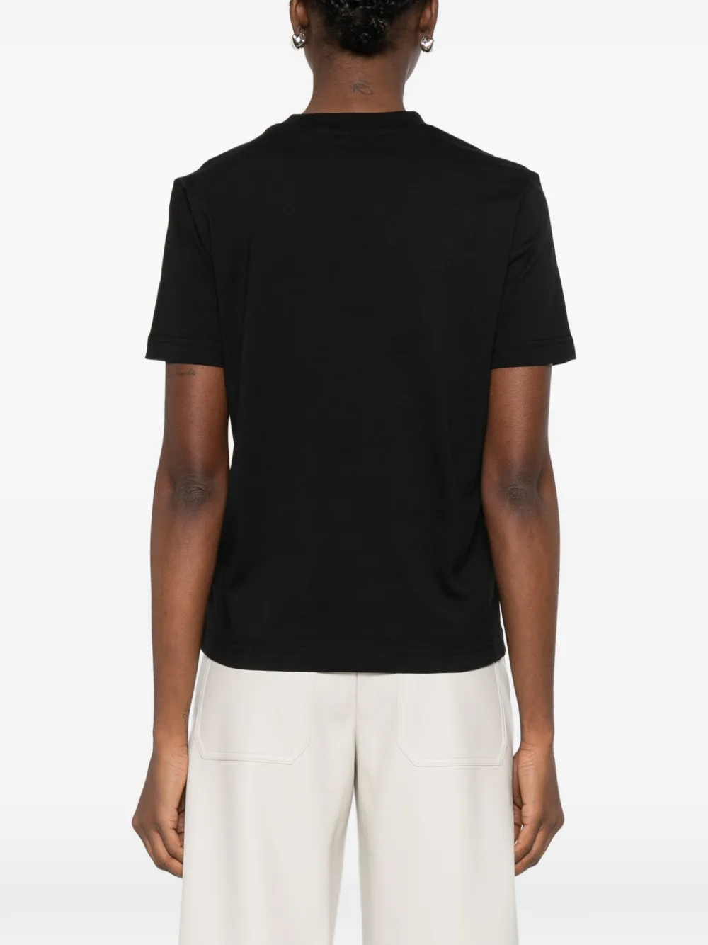 Черная футболка с принтом логотипа, круглым вырезом и короткими рукавами