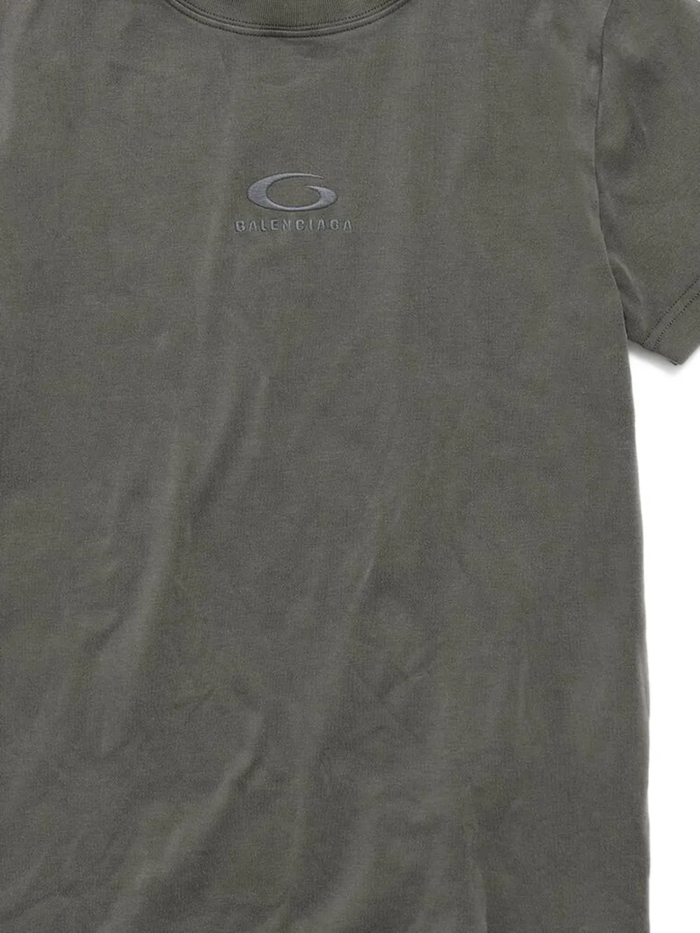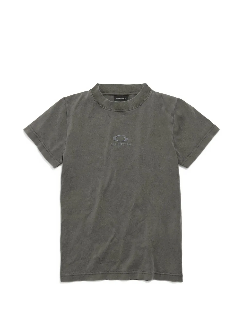 Выцветшая серая футболка с логотипом, круглым вырезом и короткими рукавами