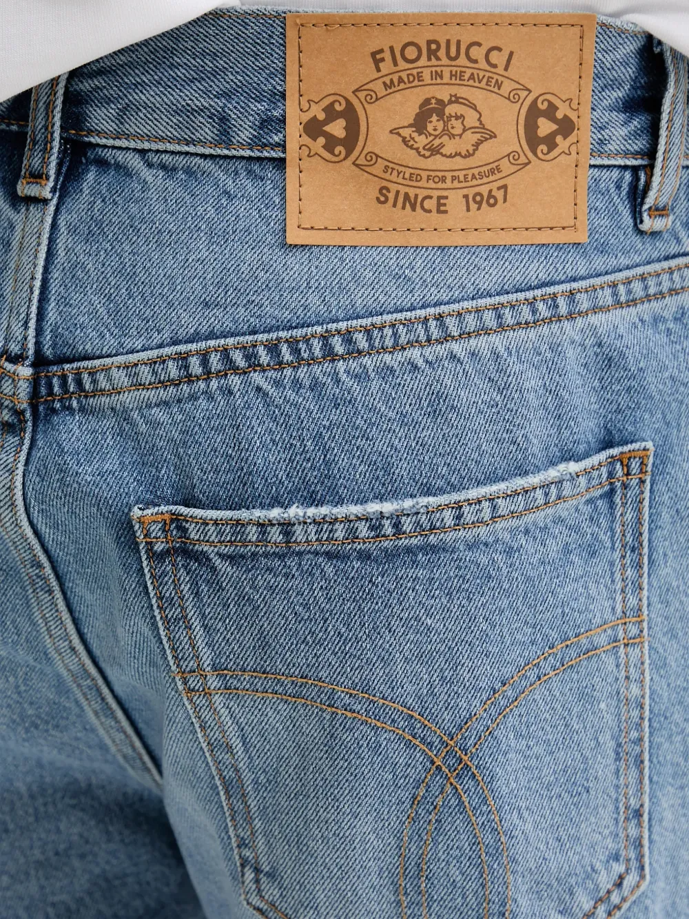 Синие джинсы из денима, пять карманов, шлевки для ремня, нашивка с логотипом сзади