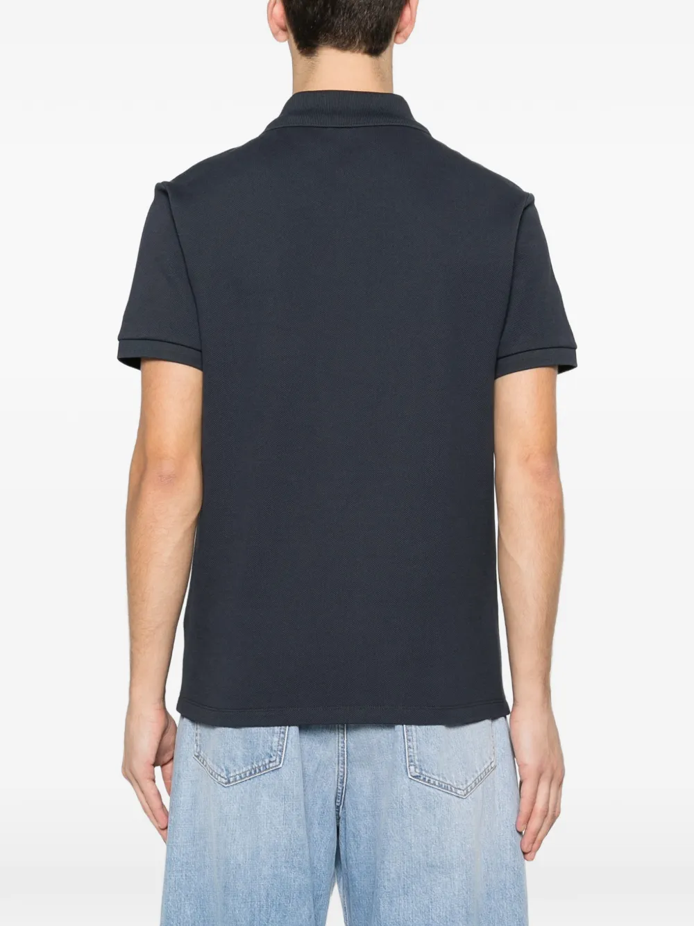 Синий поло воротник короткие рукава логотип на груди застежка на пуговицы прямой низ