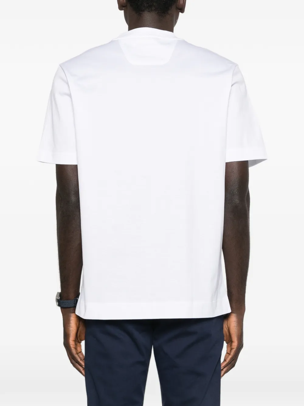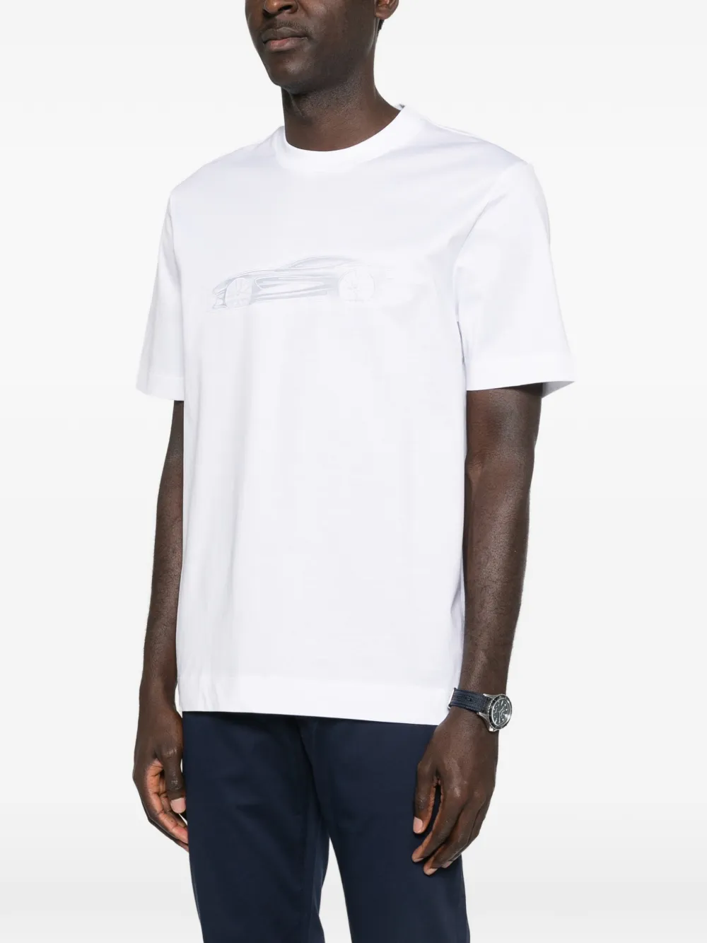 Белая футболка с изображением автомобиля, круглый вырез, короткие рукава, стандартный крой