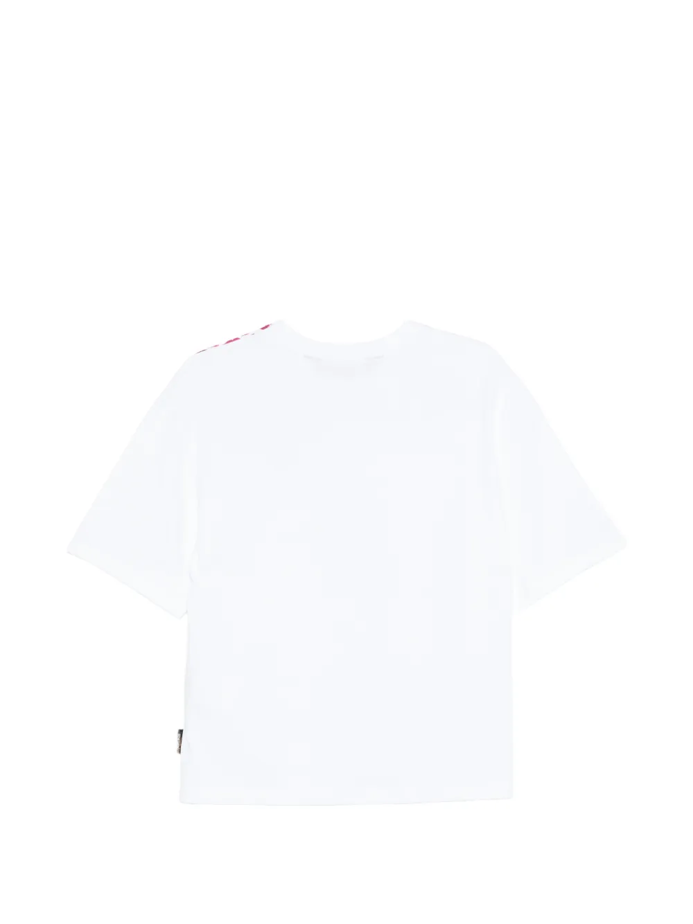 Белая/розовая хлопковая футболка с принтом в виде губ, короткими рукавами и круглым вырезом
