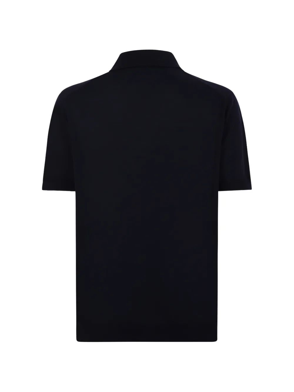 Синий трикотажный топ с текстурой, отложным воротником, застежкой на пуговицы и короткими рукавами