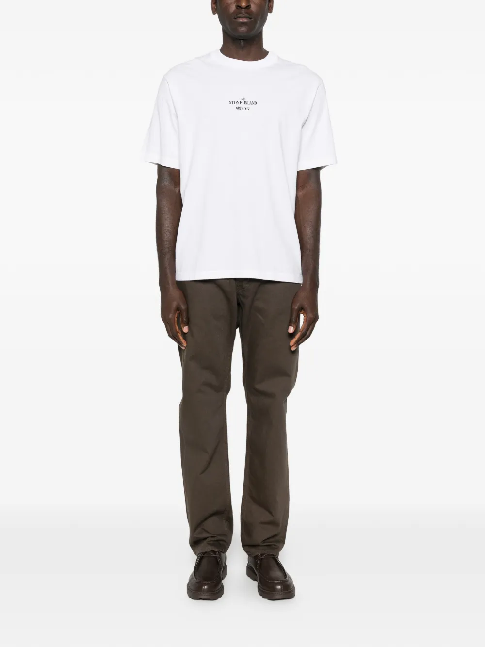Белая футболка с круглым вырезом, короткими рукавами, принтом-логотипом и прямым подолом из хлопка