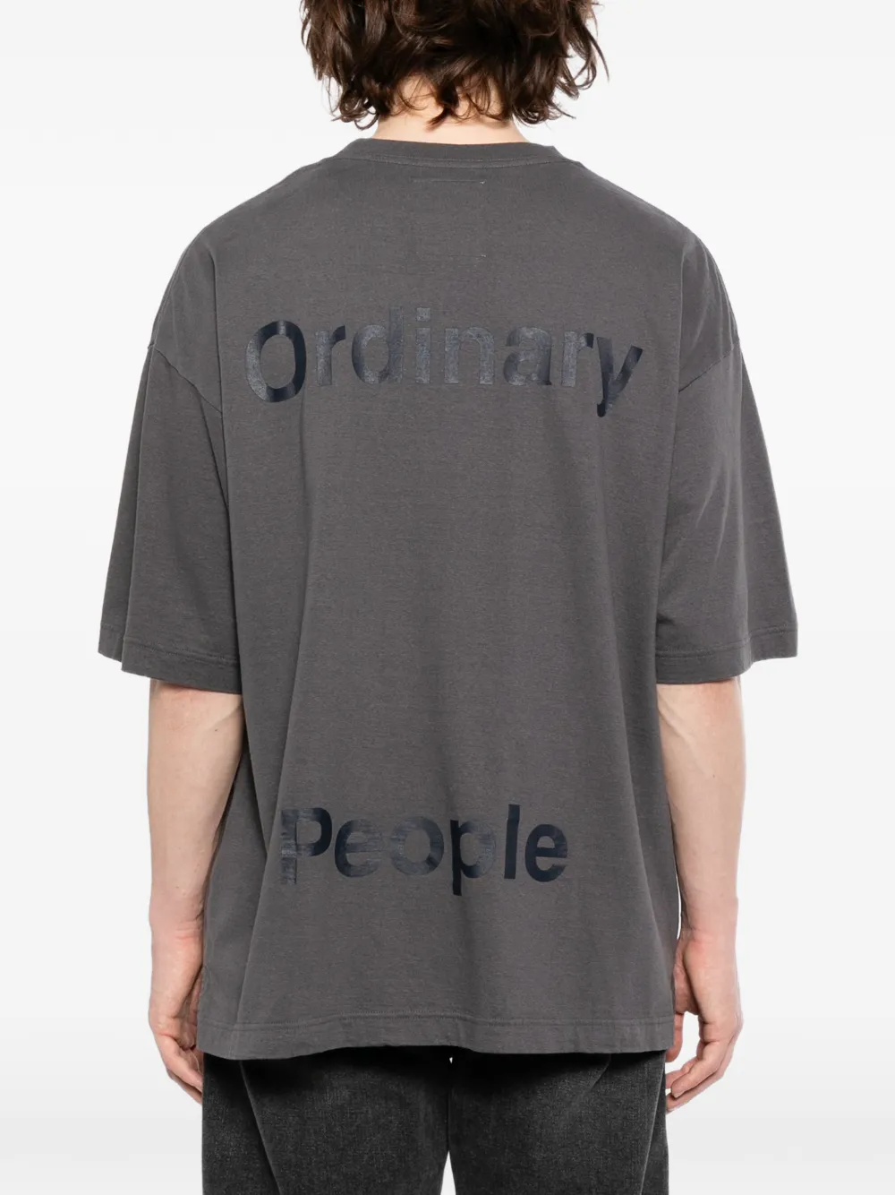Черная футболка с графическим принтом, круглый вырез, короткие рукава, бирка на задней части ворота