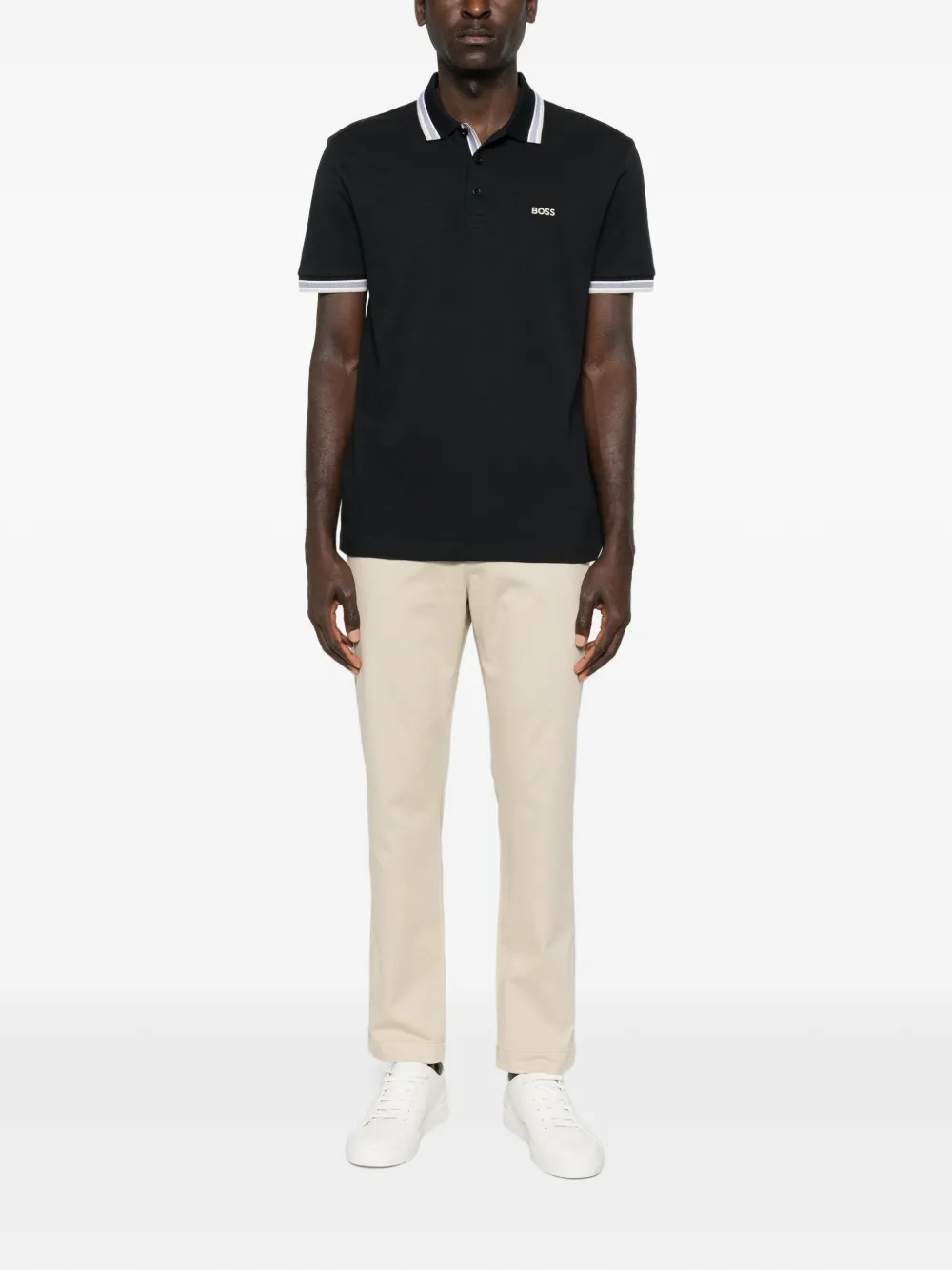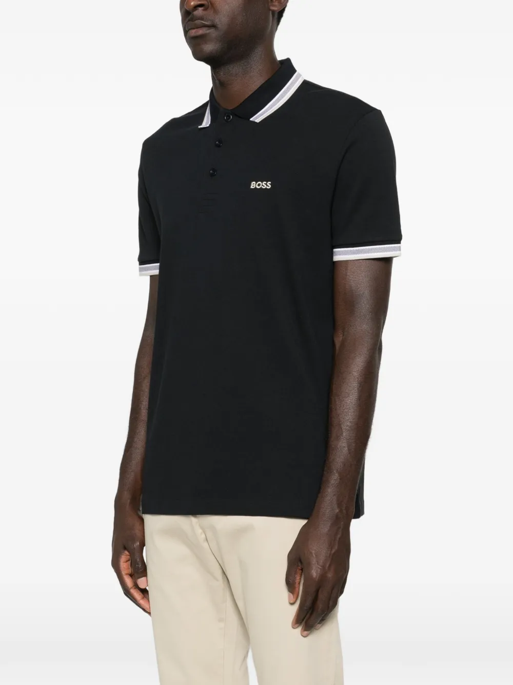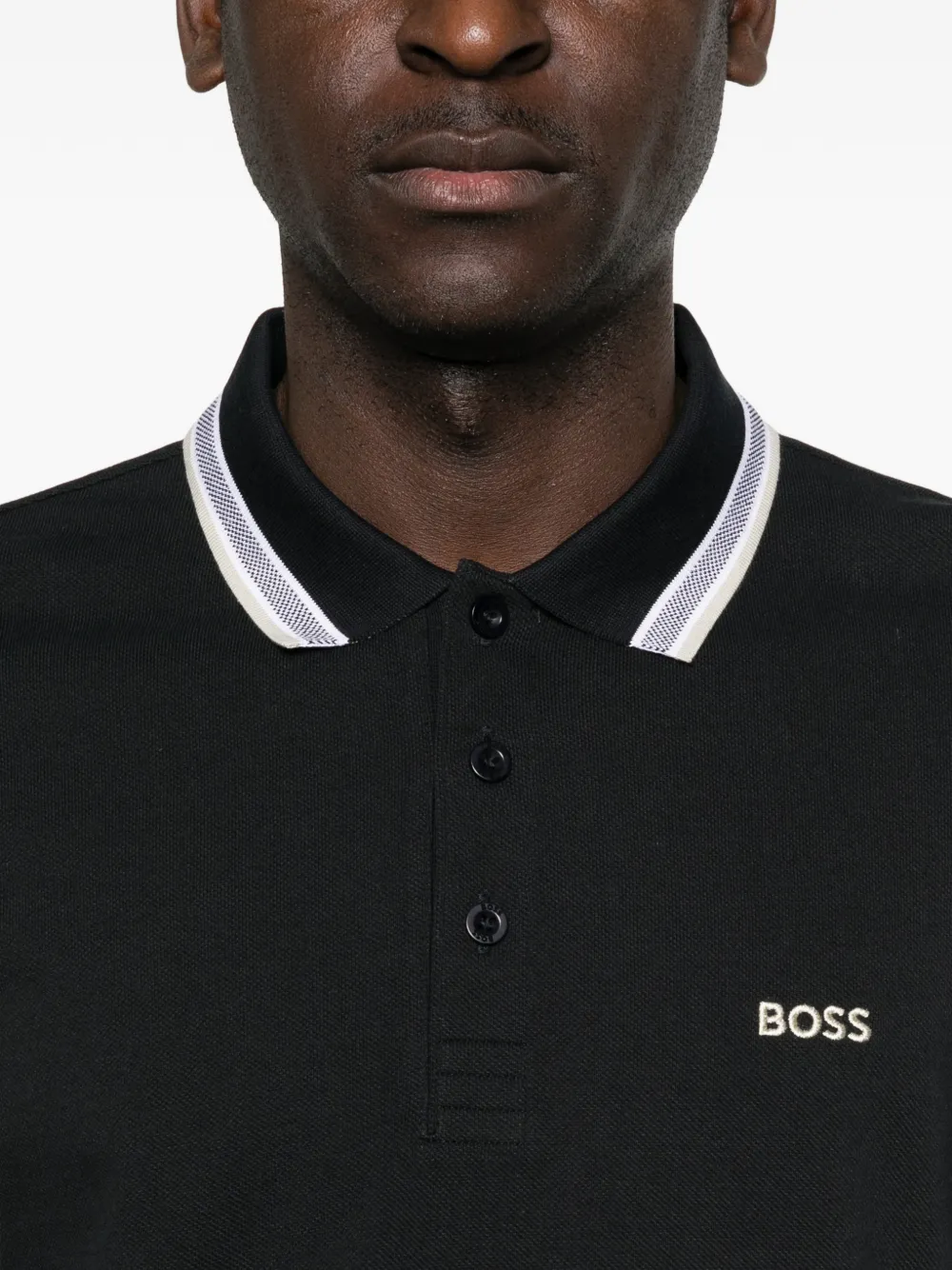 Поло с полосатым воротником Boss, черный