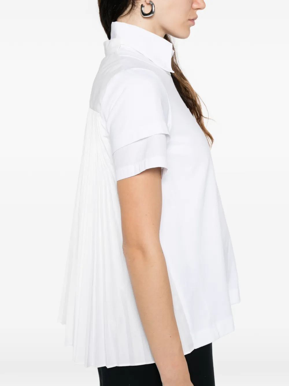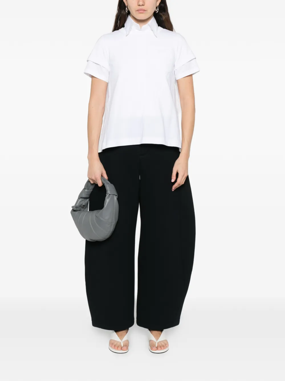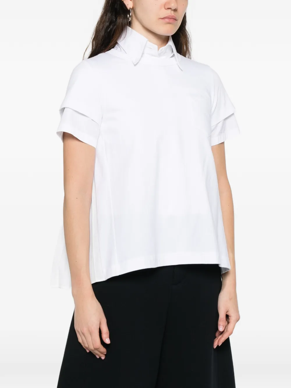 Белый хлопковый топ с оборкой по низу, круглым вырезом и короткими рукавами
