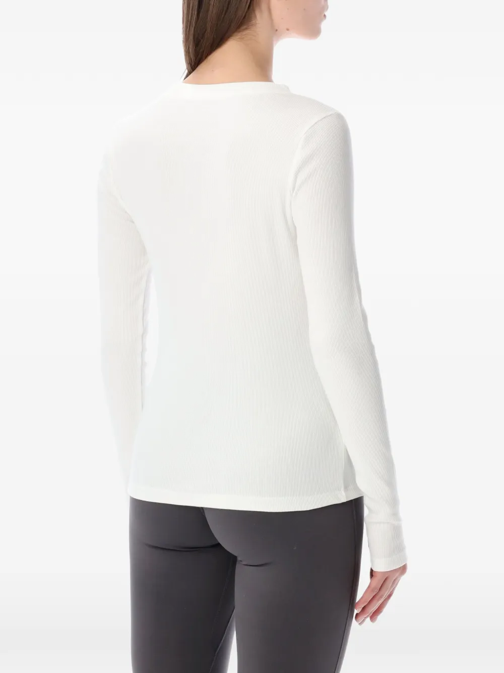 Белый врубчатый трикотаж с круглым вырезом и логотипом
