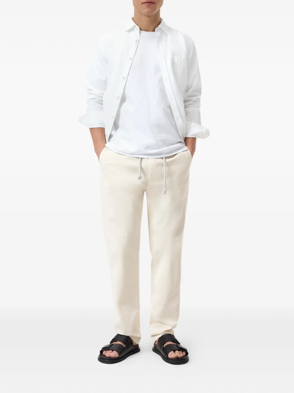 Белый круглый вырез, короткие рукава, прямой подол