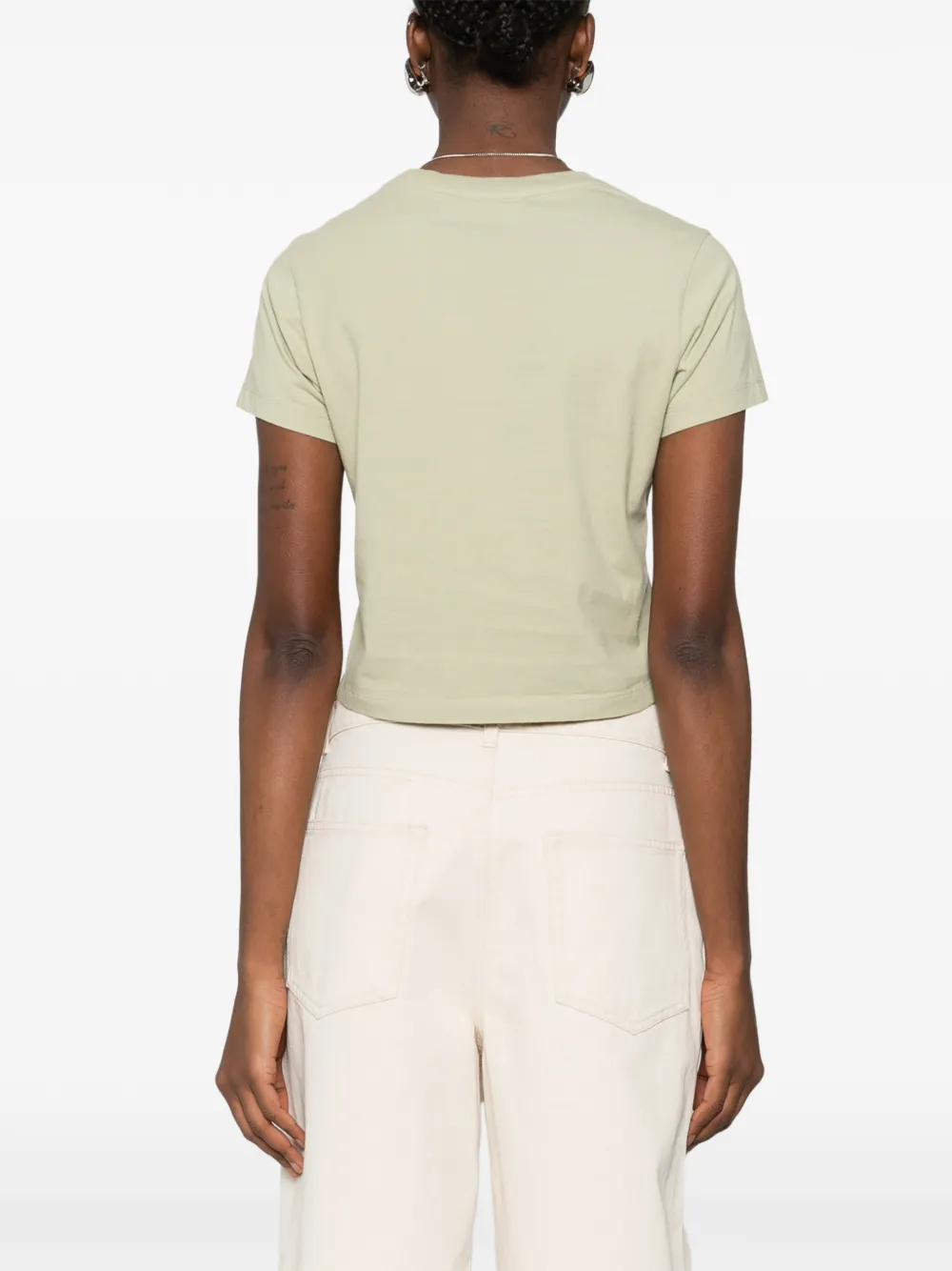 Пыльно-зеленая футболка с круглым вырезом, короткими рукавами и вышитым мотивом