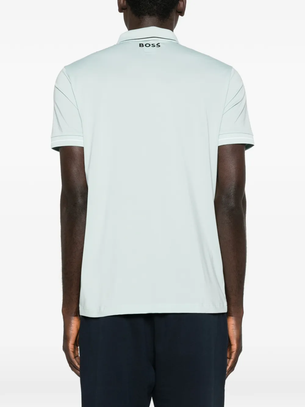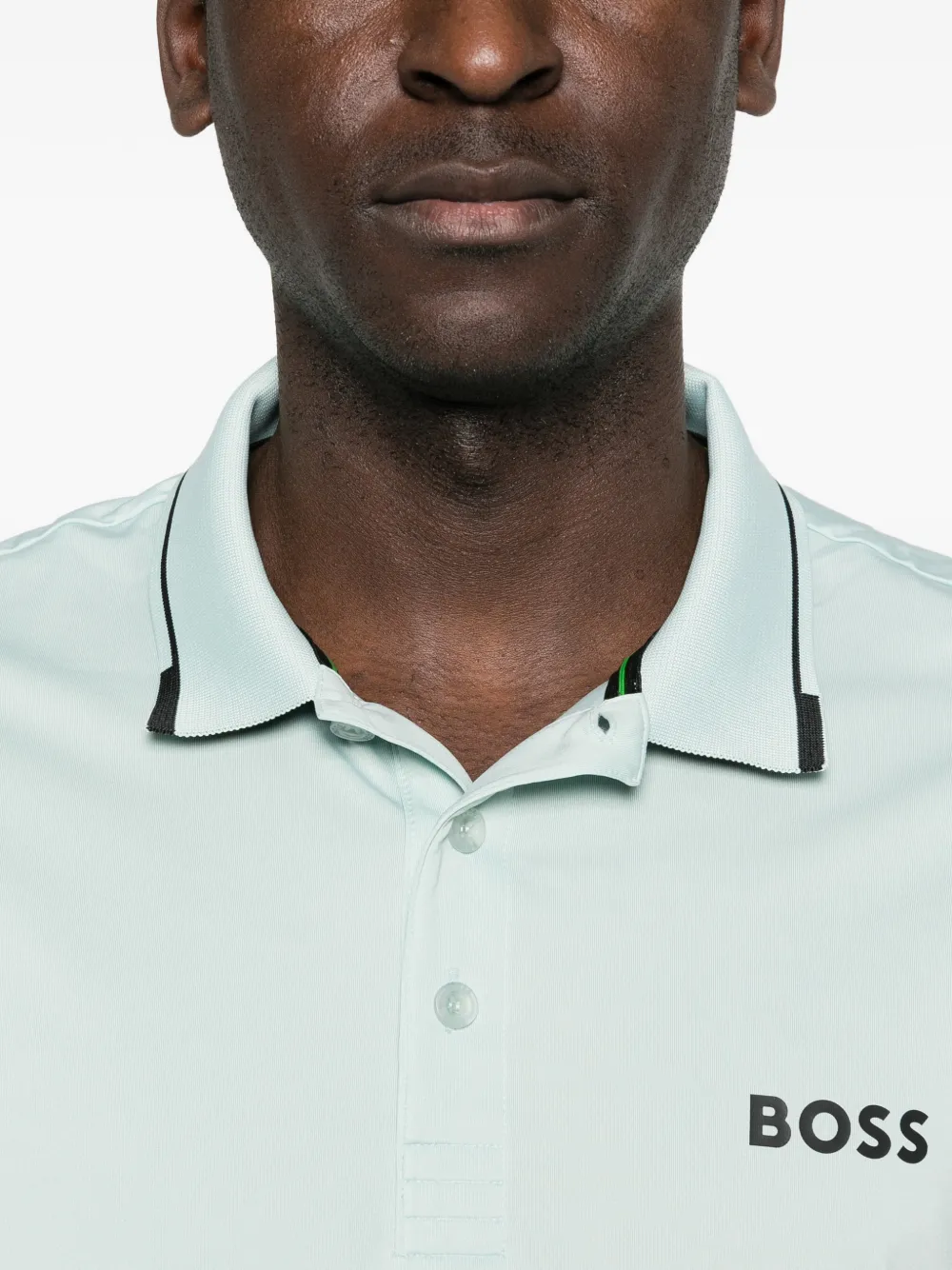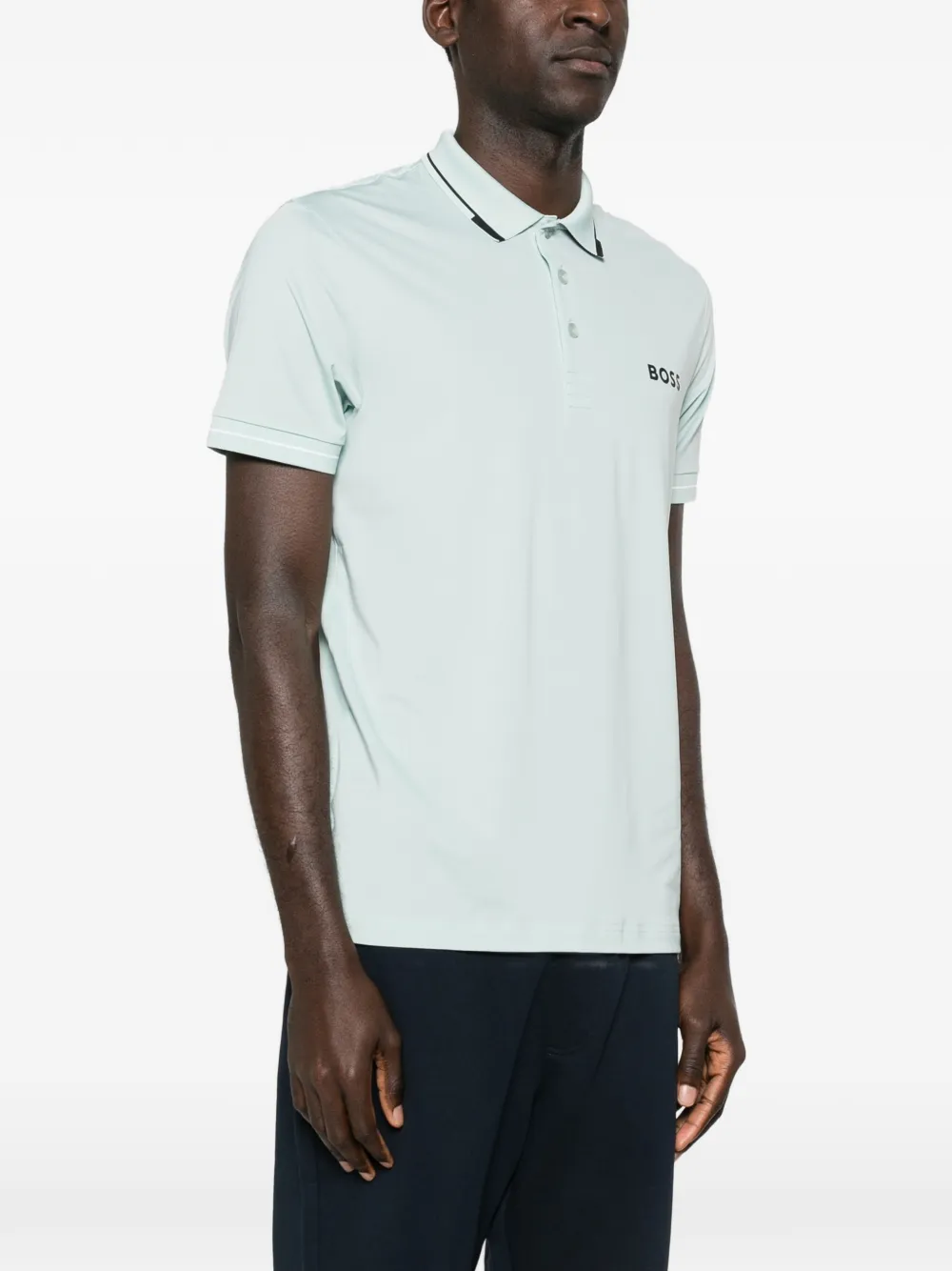 Водно-зеленая отделка, короткие рукава, застежка на пуговицы, воротник-поло