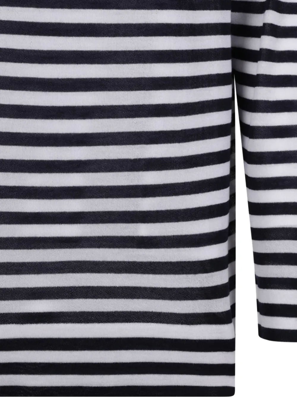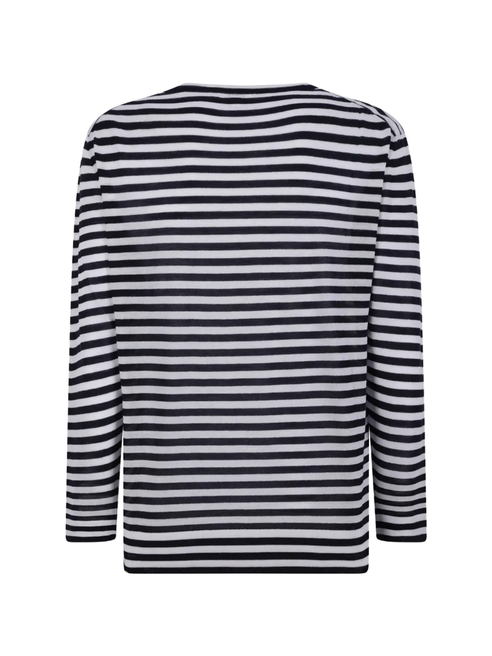 Темно-синяя и белая полоска, круглый вырез, длинные рукава