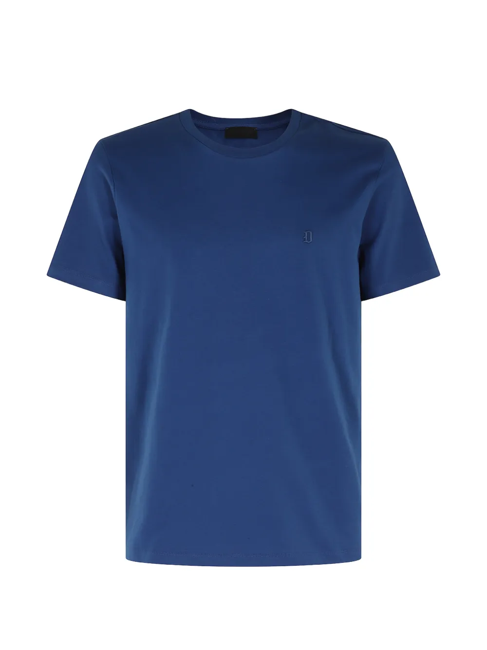 Синяя футболка с круглым вырезом, короткими рукавами и логотипом
