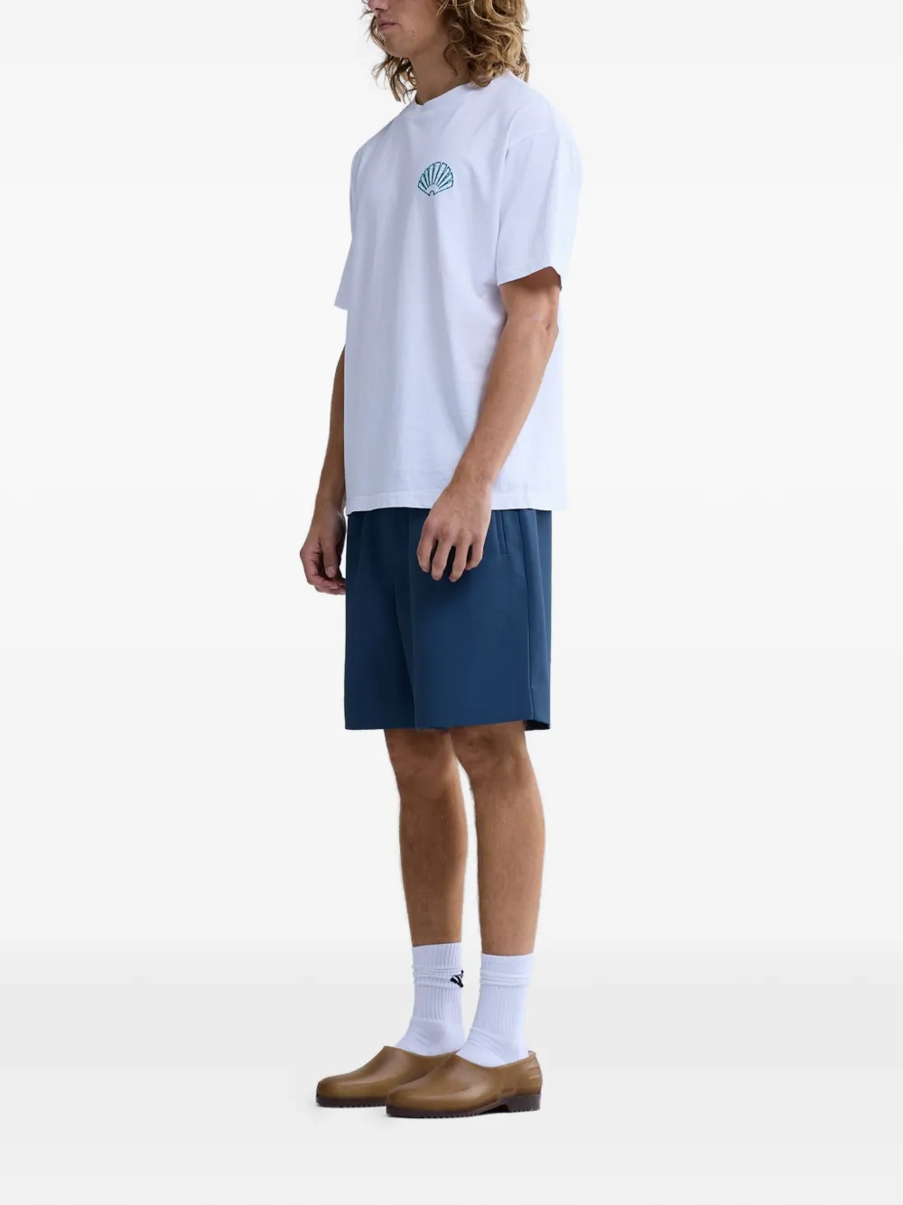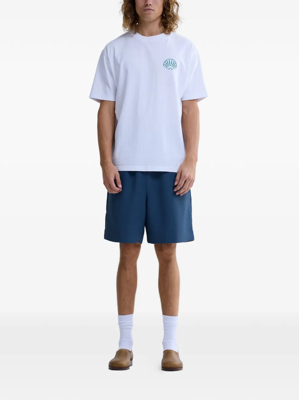 Белая футболка с принтом ракушки, круглый вырез, короткие рукава