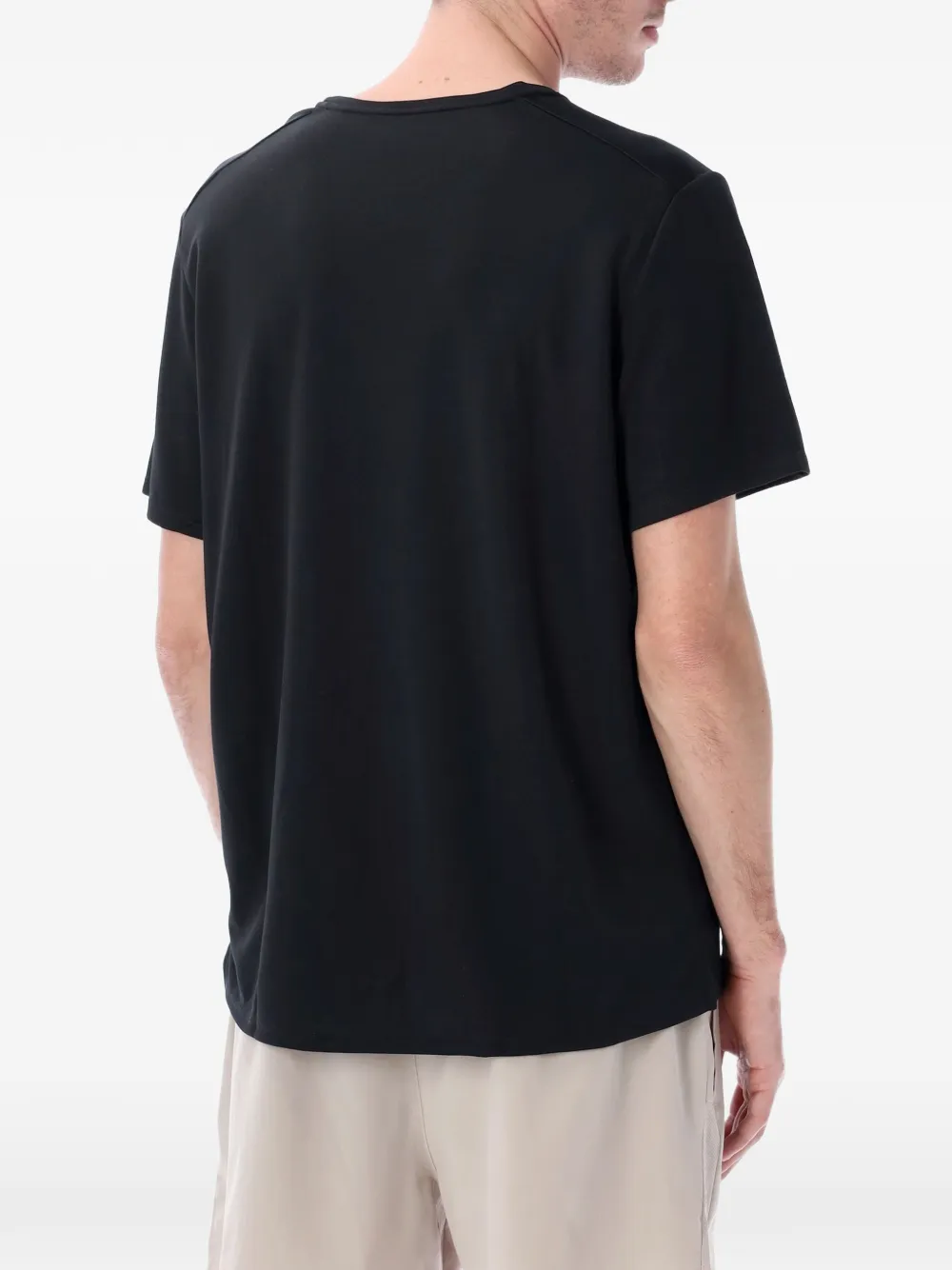 Черная футболка с логотипом, круглым вырезом и короткими рукавами