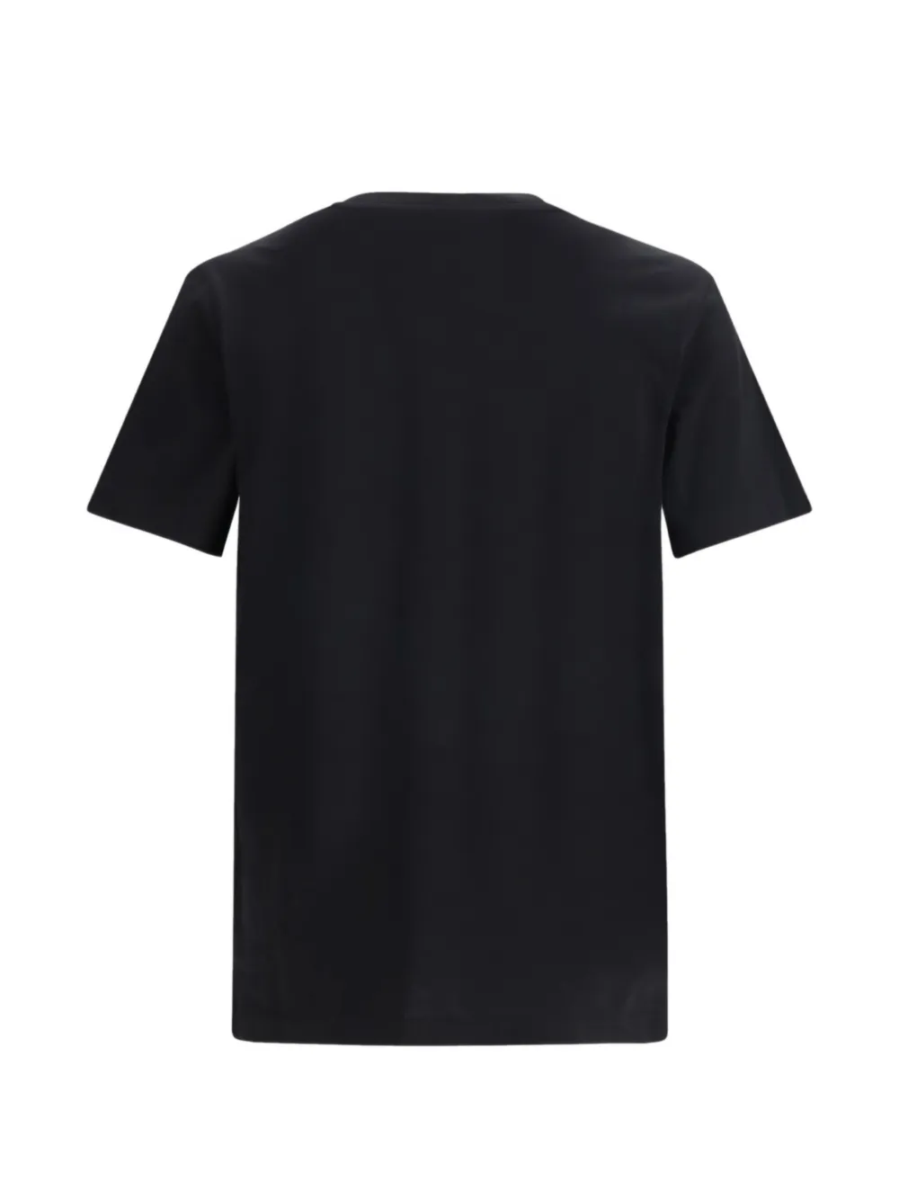Черная футболка с логотипом на груди, круглым вырезом, короткими рукавами и прямым подолом