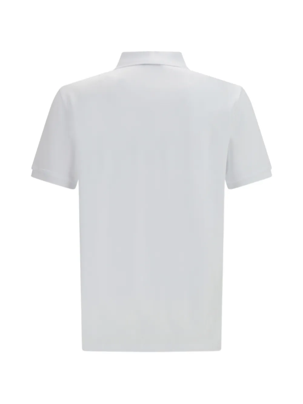 Белая рубашка-поло с логотипом, застежкой на пуговицы, короткими рукавами и воротником поло