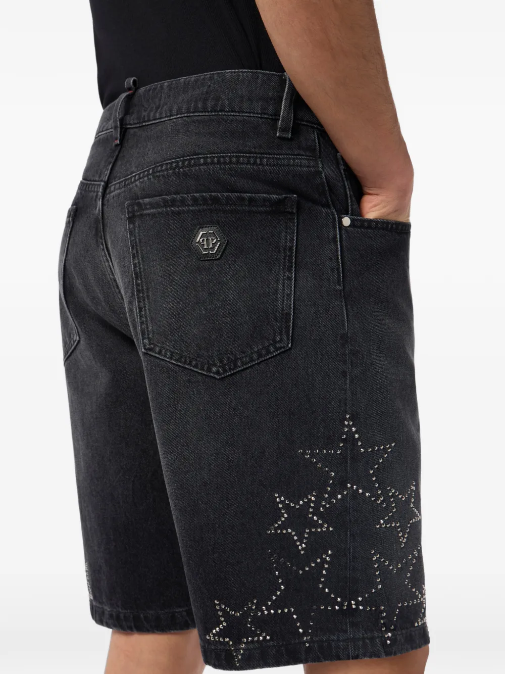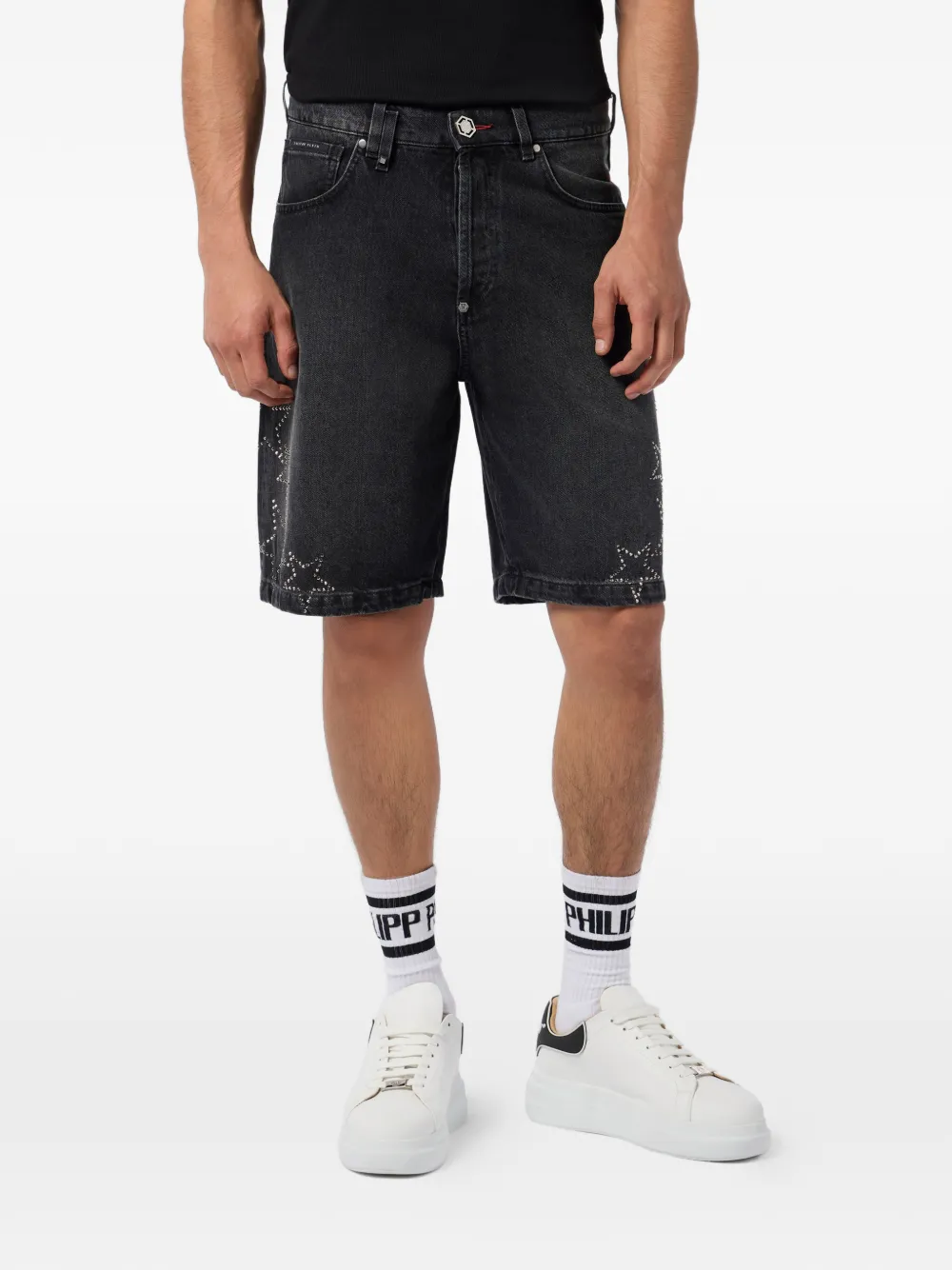 Джинсовые шорты с звездами Philipp Plein, черный