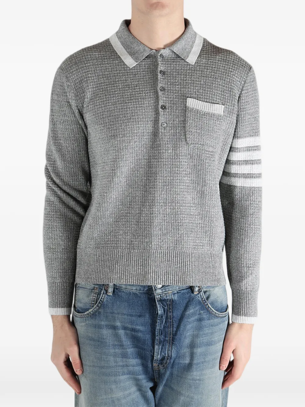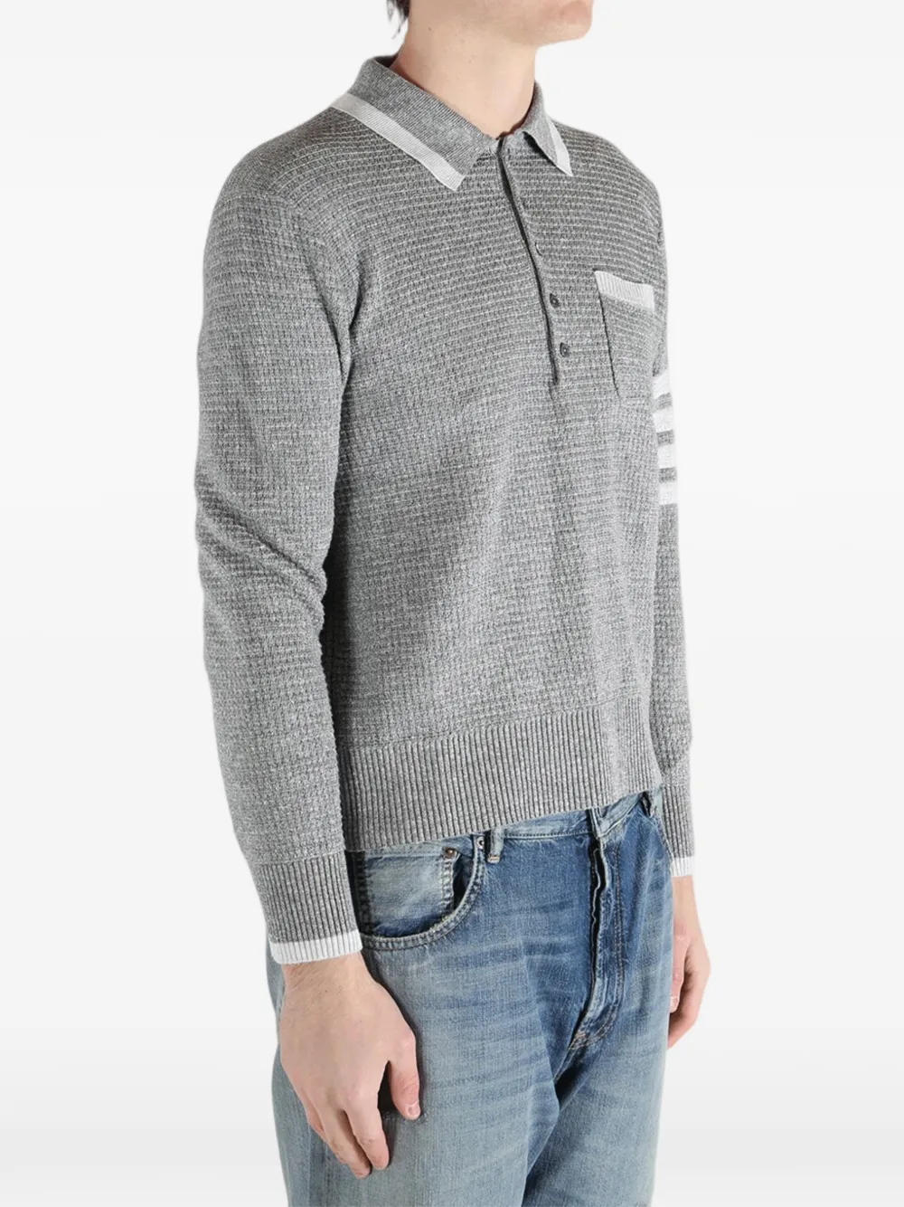 Полосатое поло с карманом Thom Browne, серый
