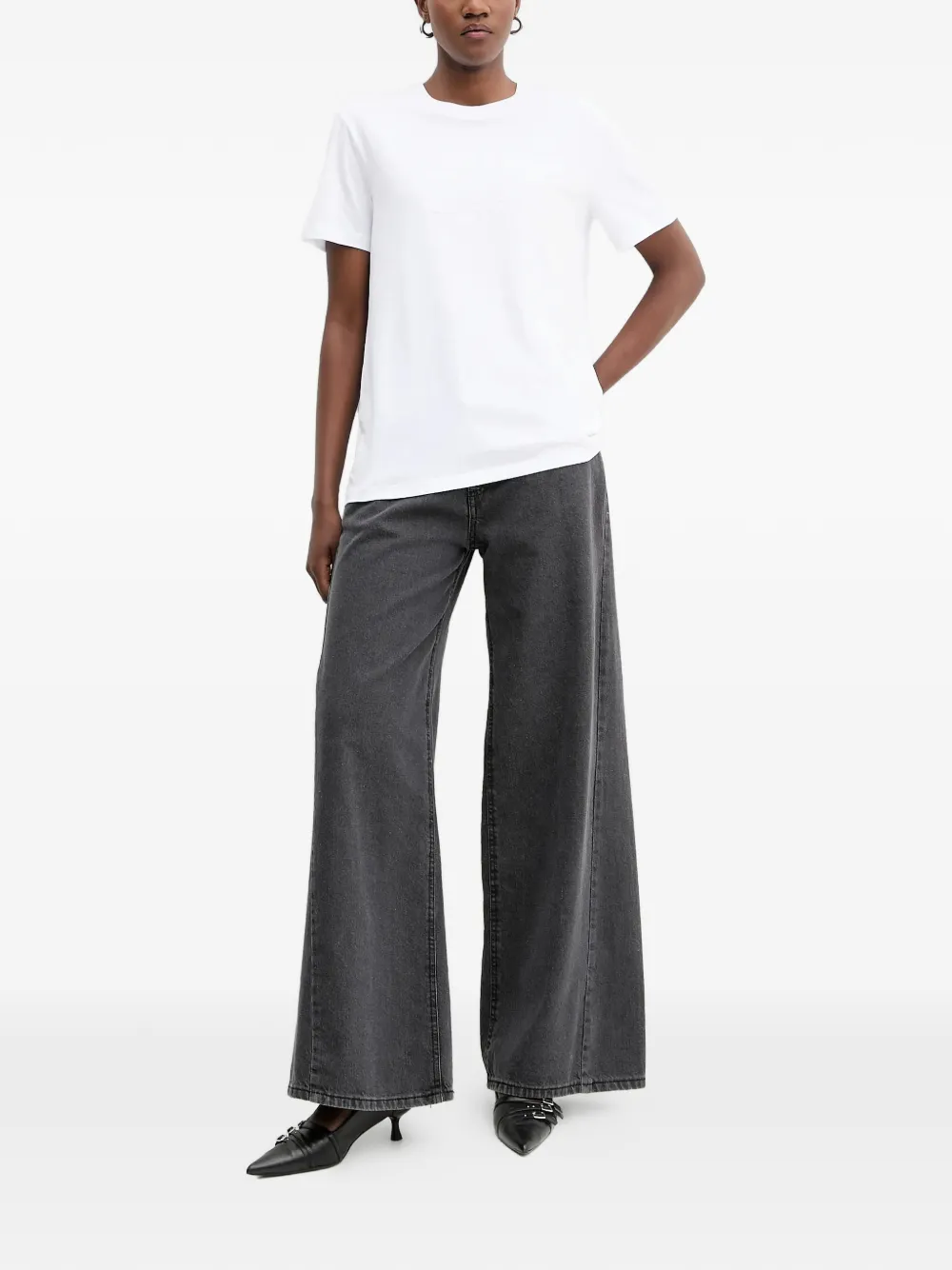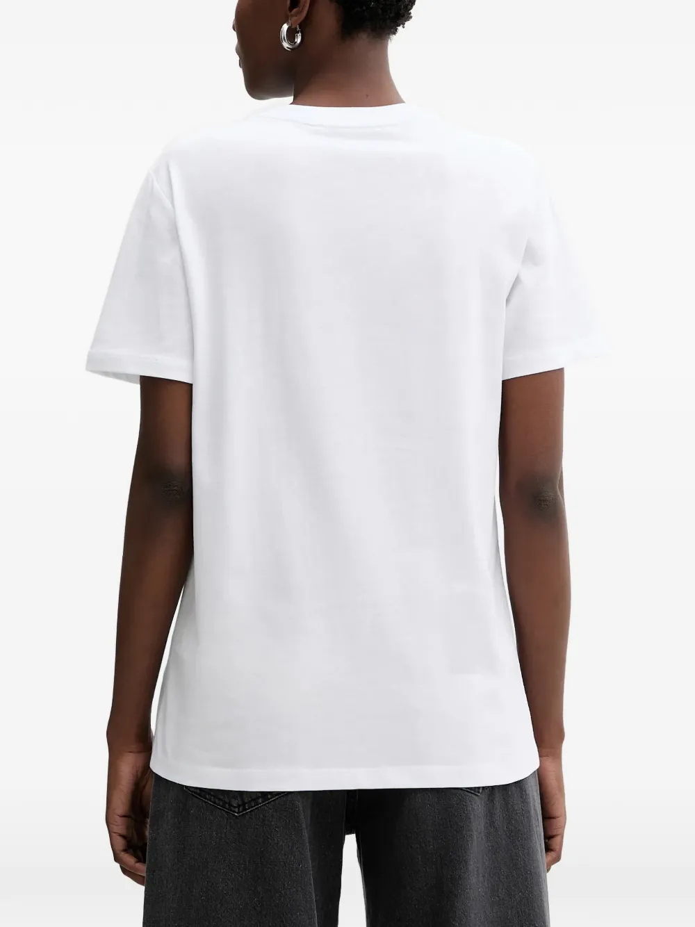 Белая футболка с вышитым логотипом, круглый вырез, короткие рукава