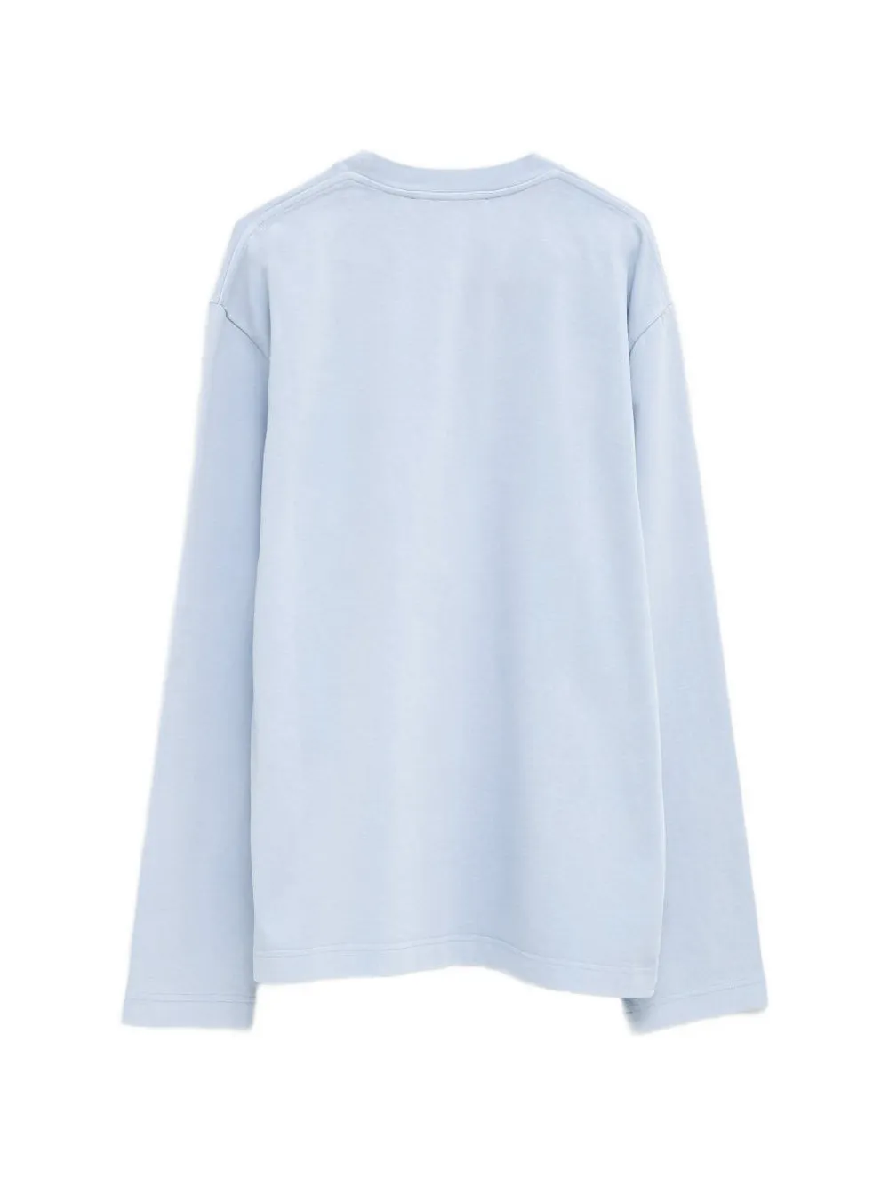 Синяя футболка с вышитым логотипом, длинными рукавами и круглым вырезом
