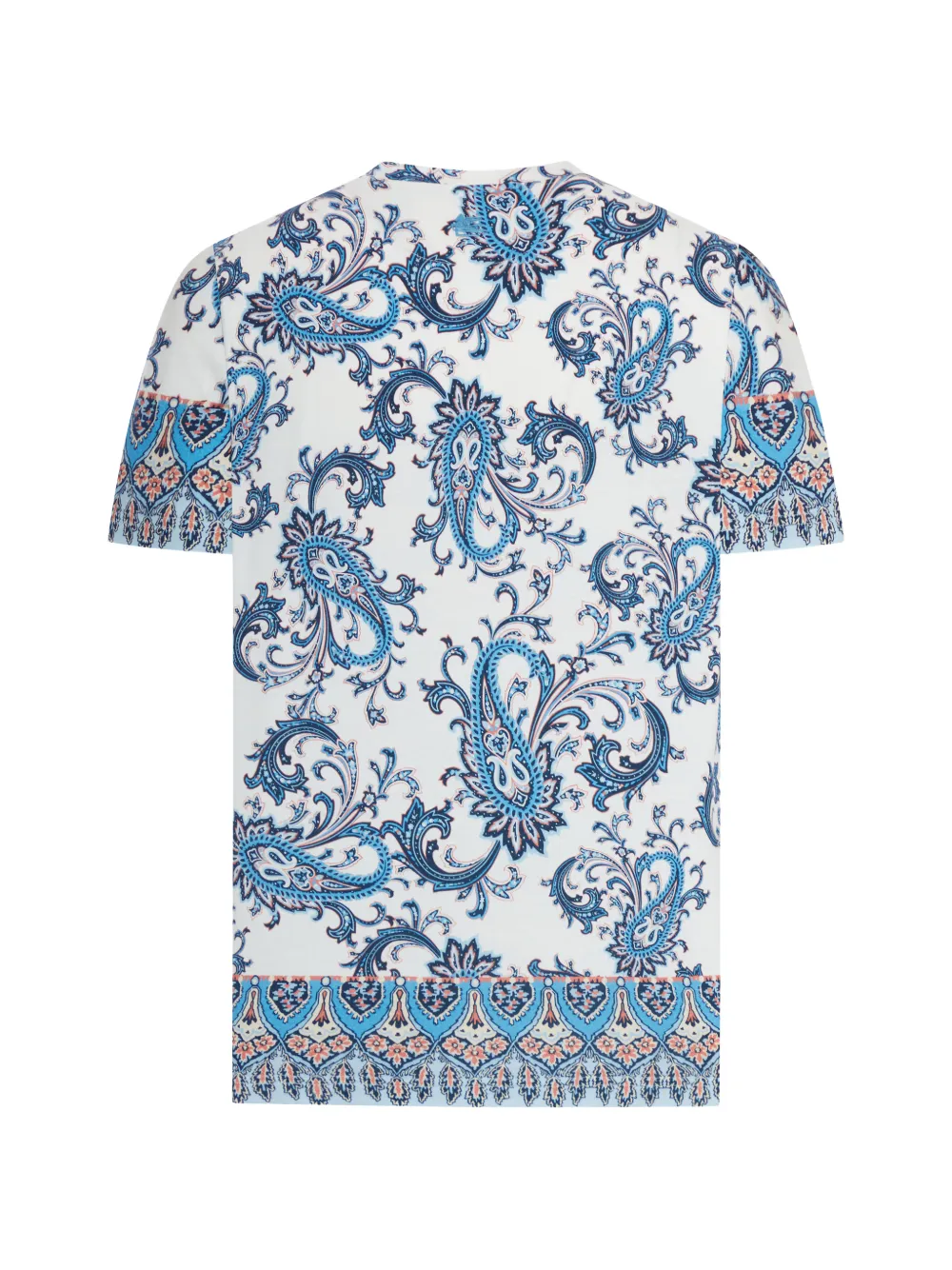Белая/синяя футболка с принтом "пейсли", круглым вырезом и короткими рукавами