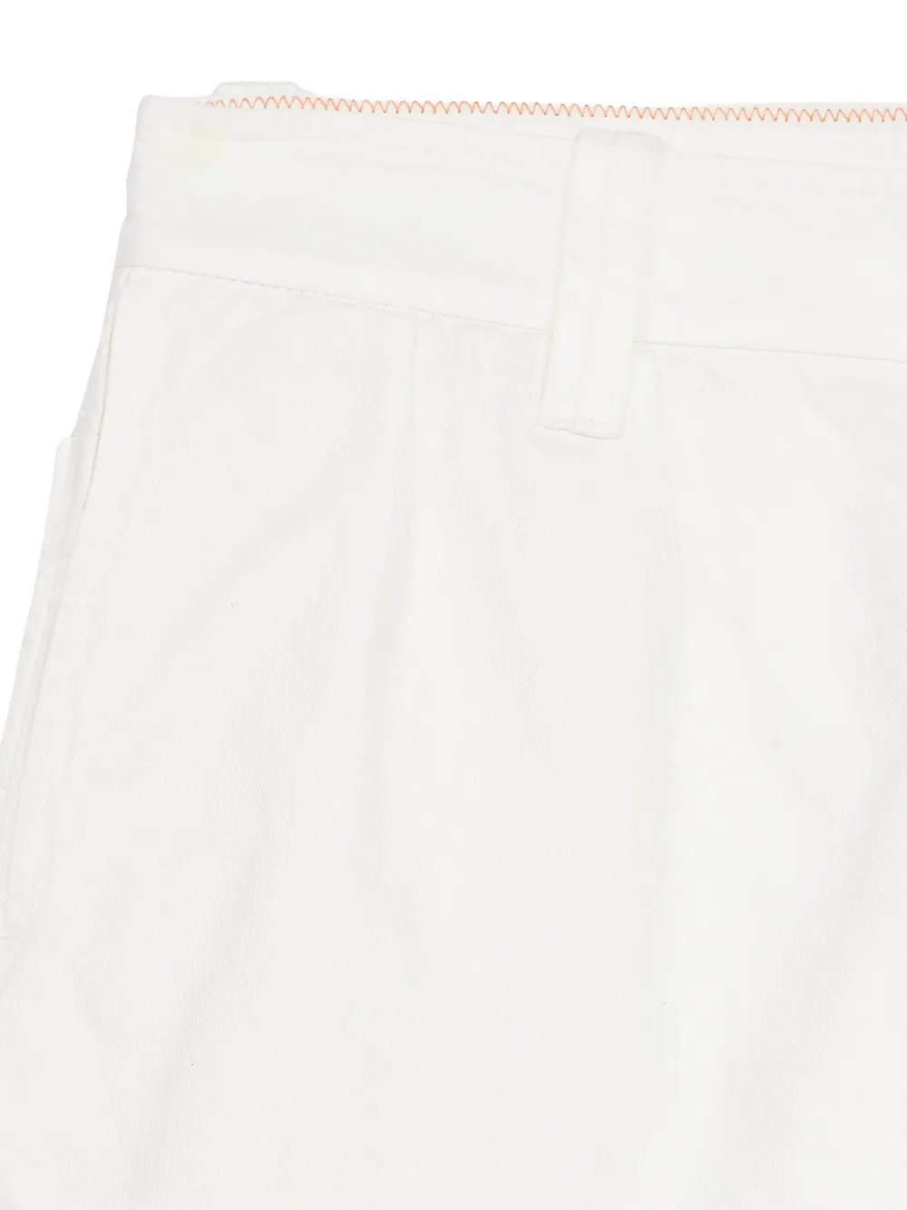 Белые шорты короткой длины с драпировкой, шлевками для ремня и задним карманом