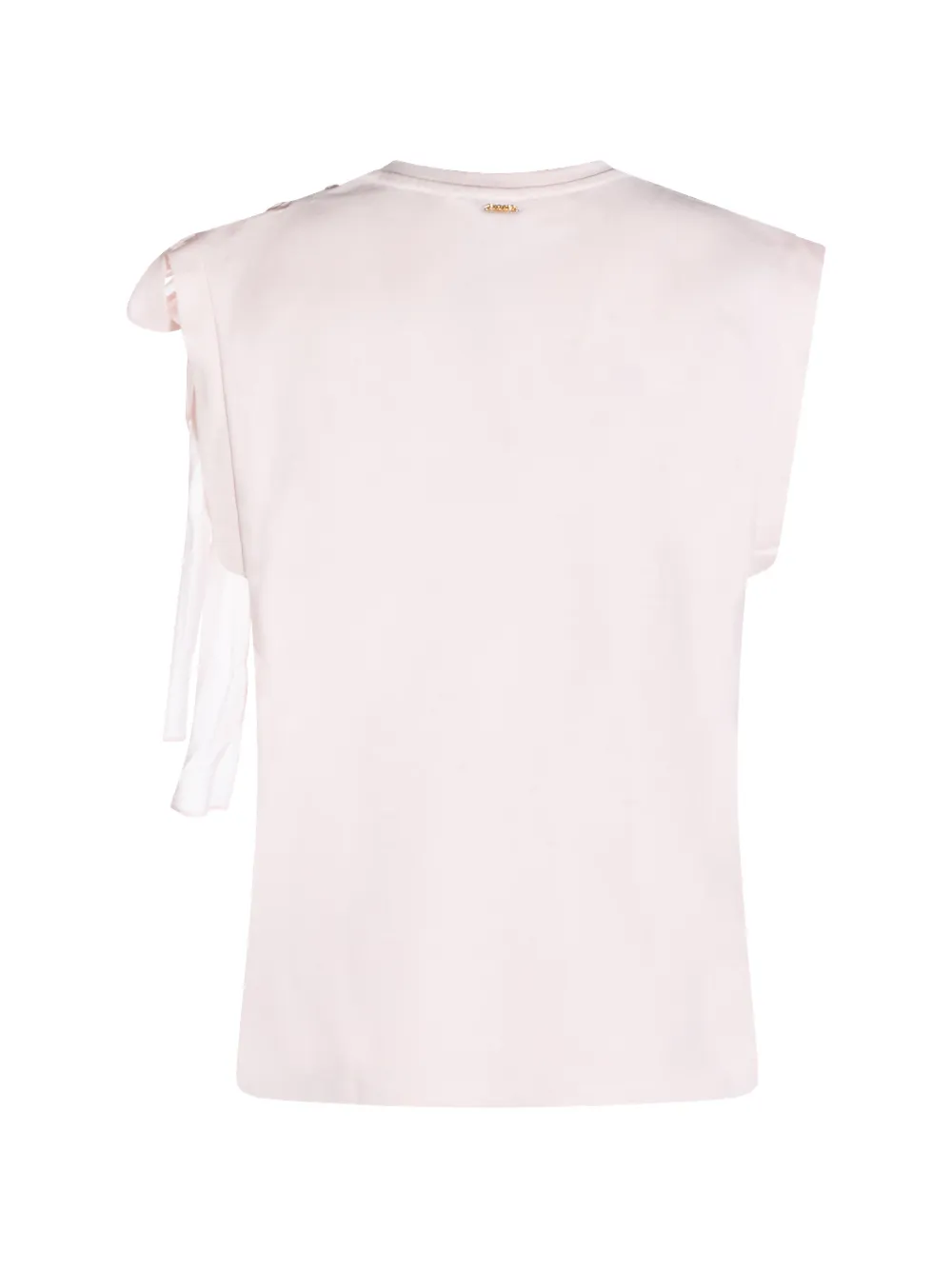 Розовая майка без рукавов с круглым вырезом, украшенная бантом и нашивкой-логотипом
