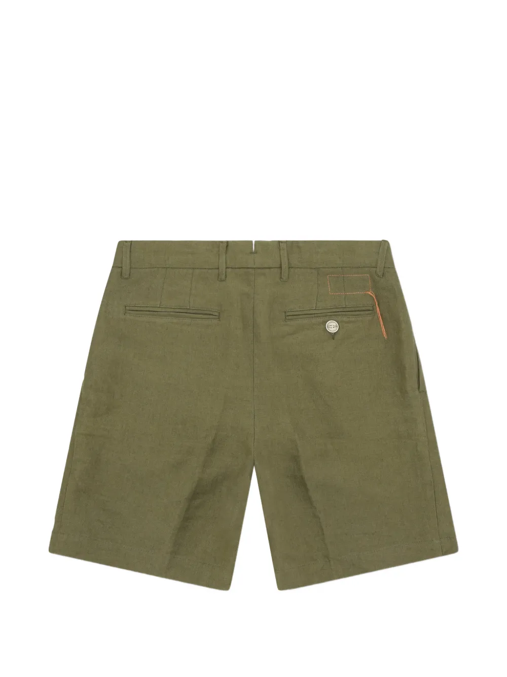 Зеленый цвет, боковые карманы, двойные центральные складки, прорезные задние карманы