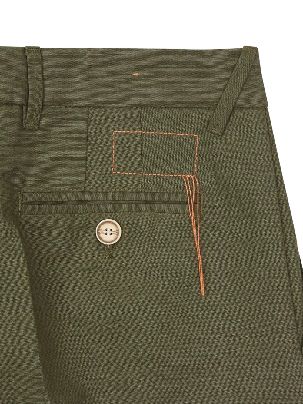 Зеленые окрашенные готовым изделием брюки с застежкой на пуговицу и задним прорезным карманом