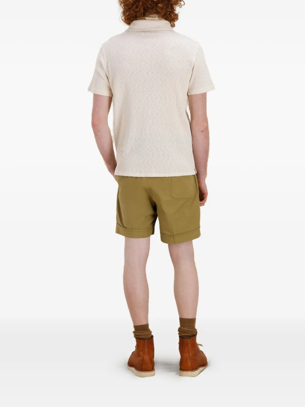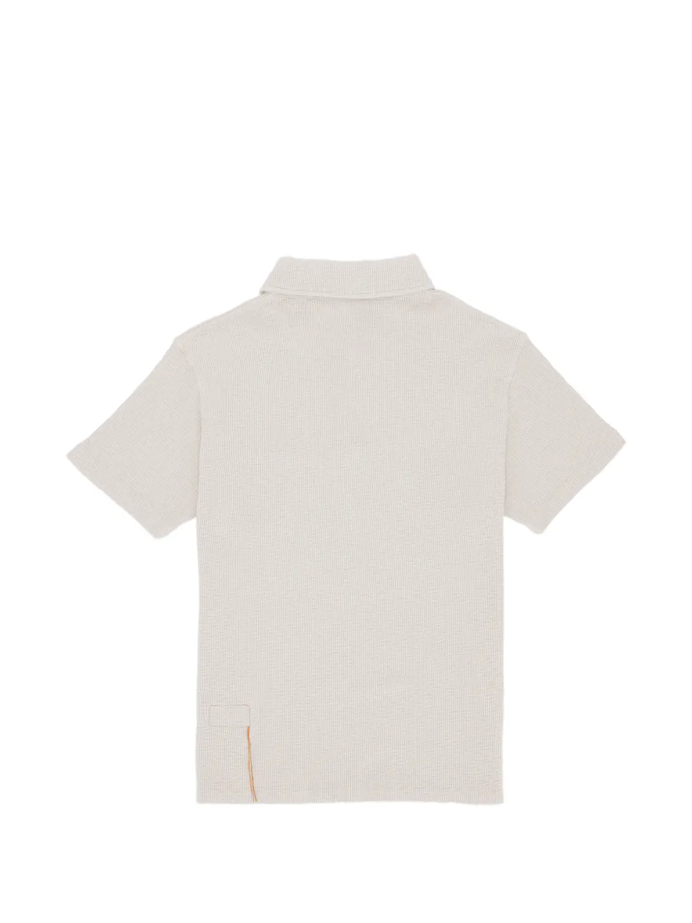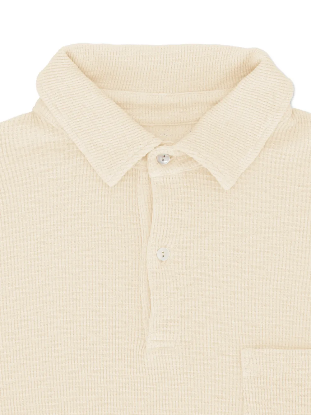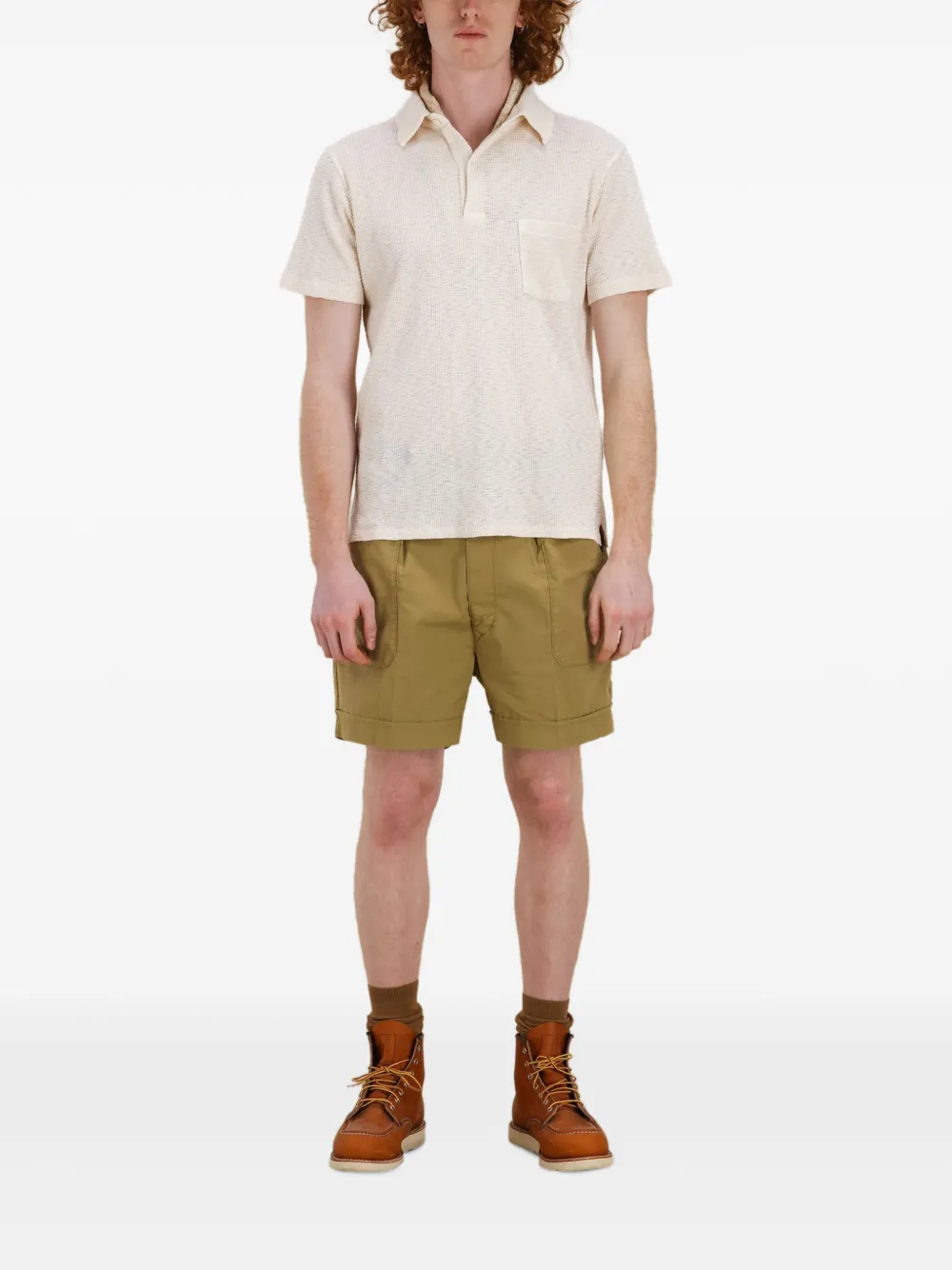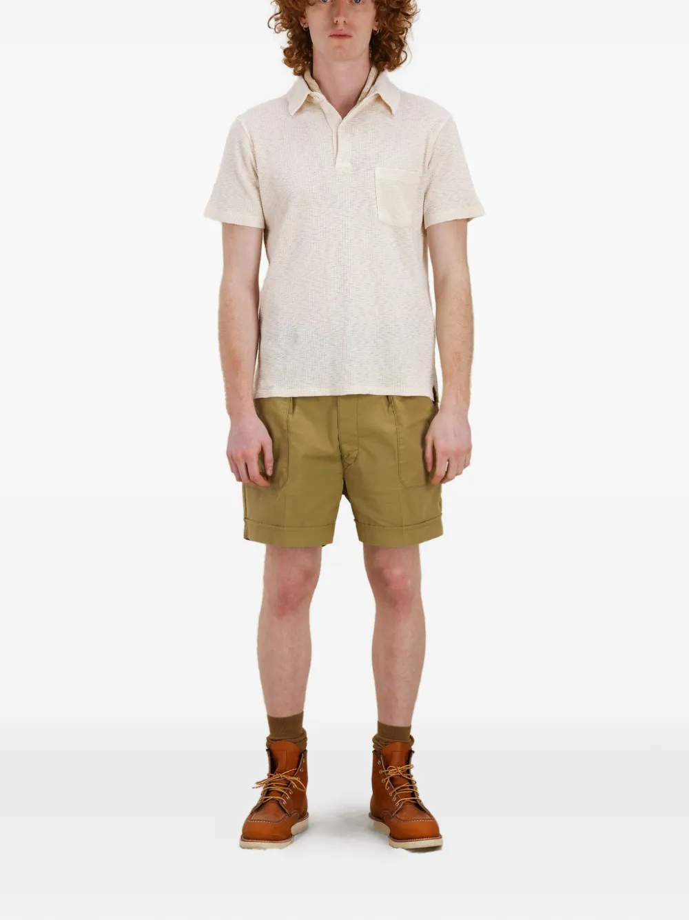 Бежевый, фактура вафля, нагрудный карман, короткие рукава, отложной воротник, застежка на пуговицы