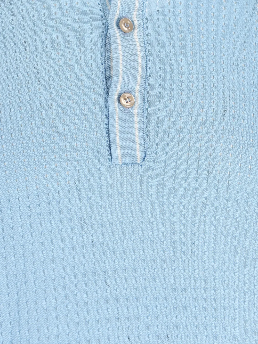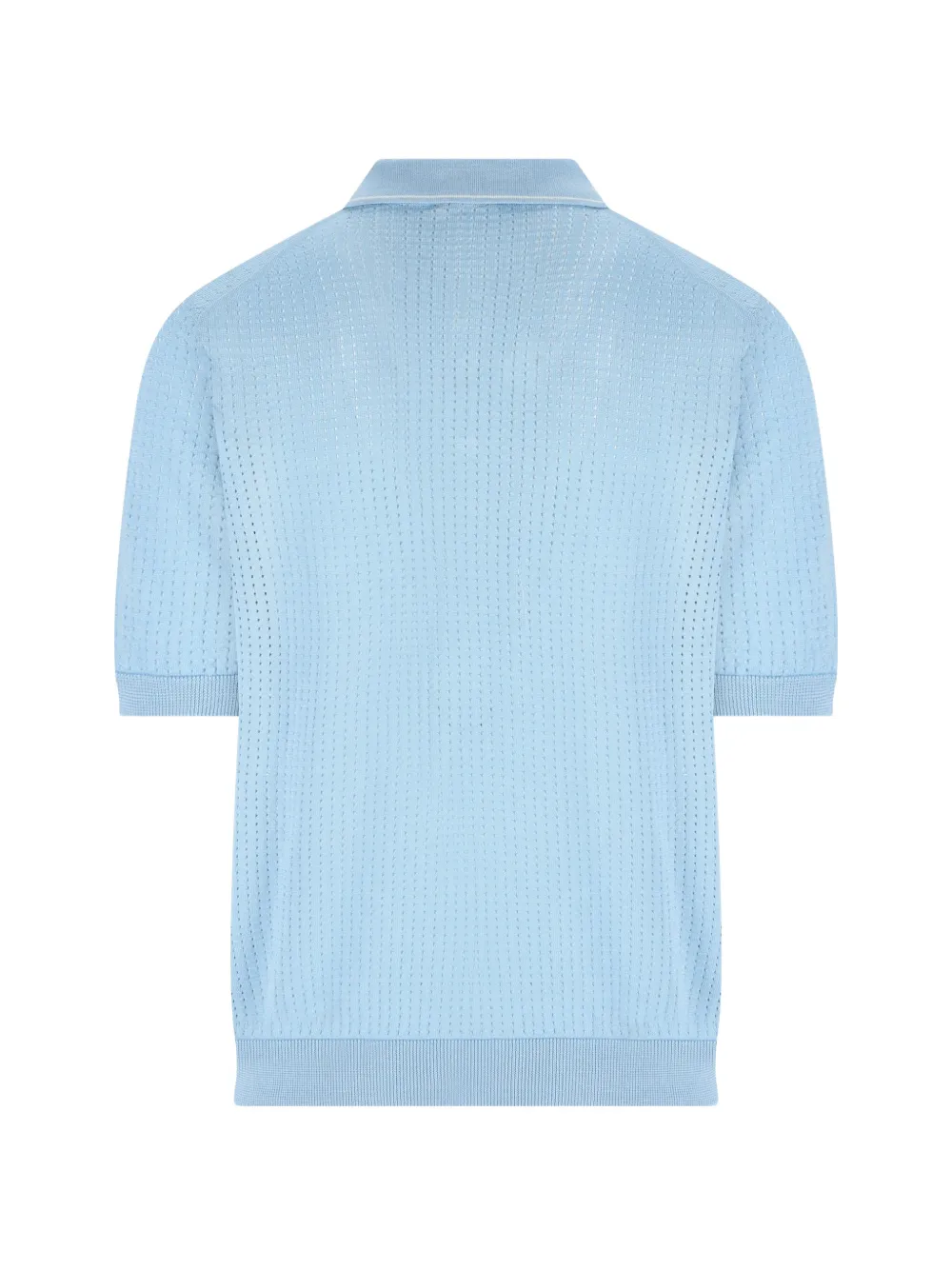 Светло-голубой открытая вязка, ребристый низ, застежка на пуговицы, отложной воротник, короткие рукава