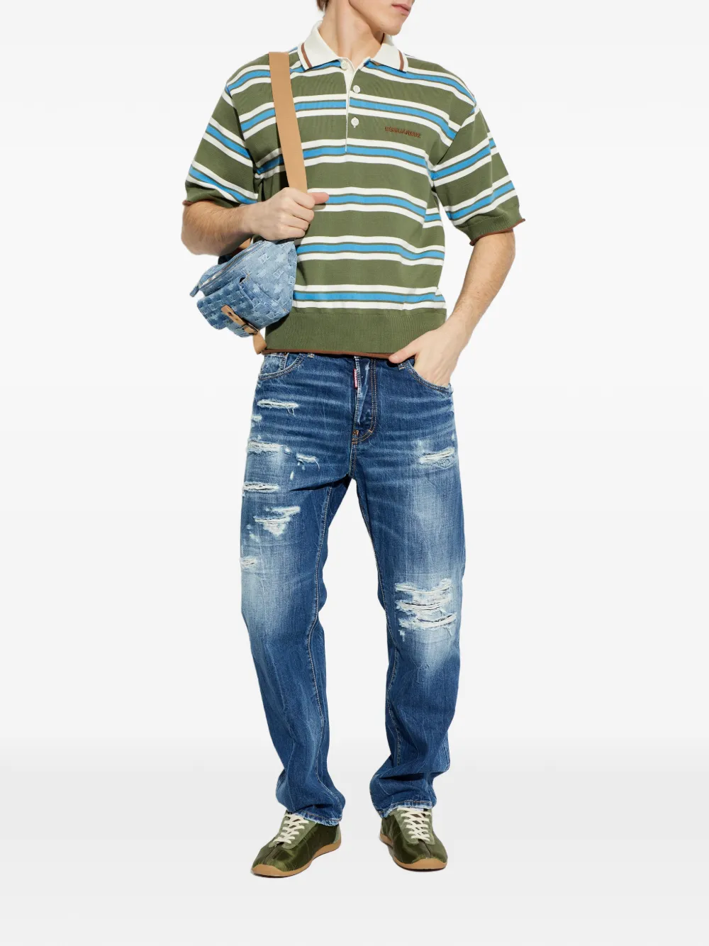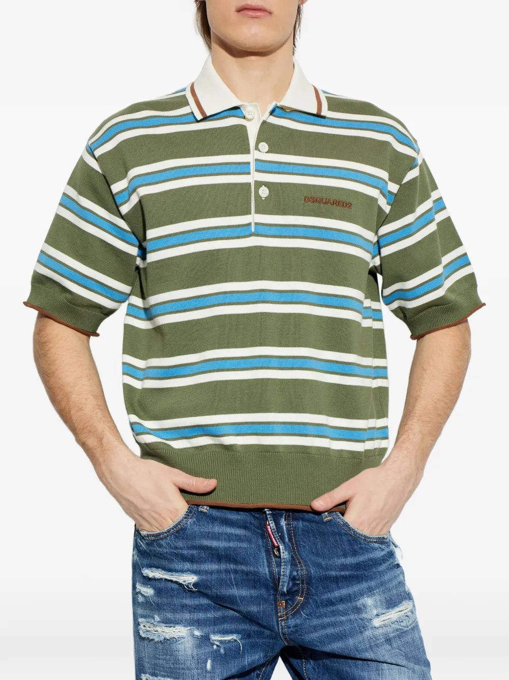 Поло в полоску Dsquared2, зеленый