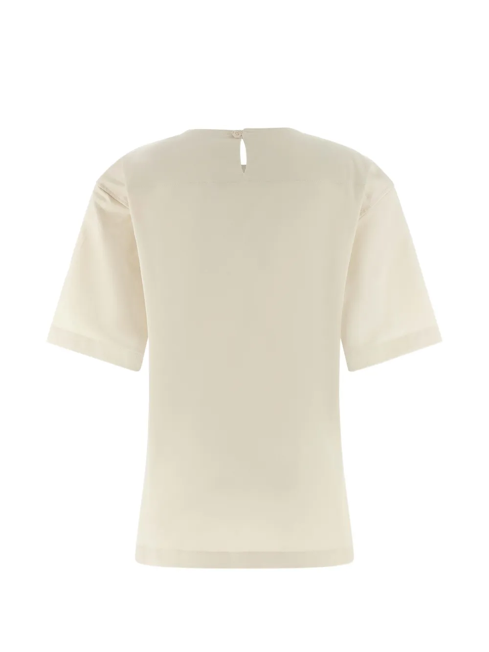 Белая футболка с круглым вырезом, застежкой на пуговицы и короткими рукавами