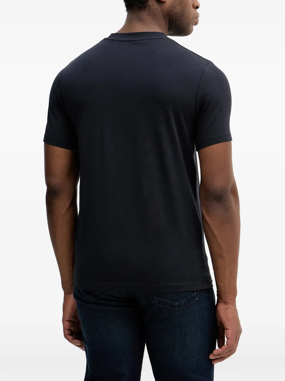 Темно-синяя футболка с короткими рукавами, круглым вырезом и логотипом