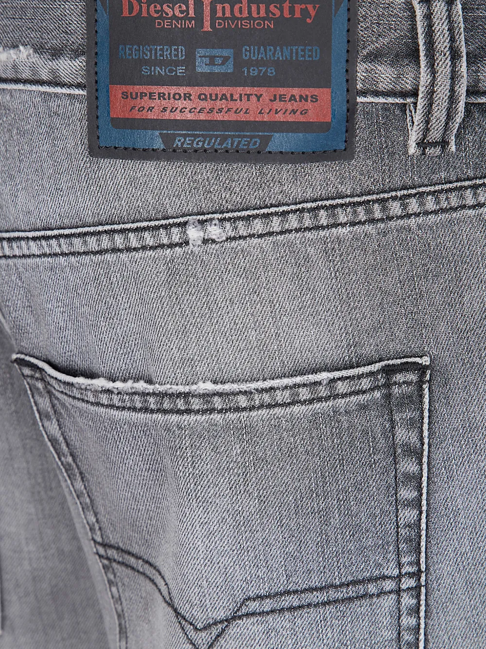 Серые джинсы с эффектом потертостей, классическим прямым кроем и пятью карманами