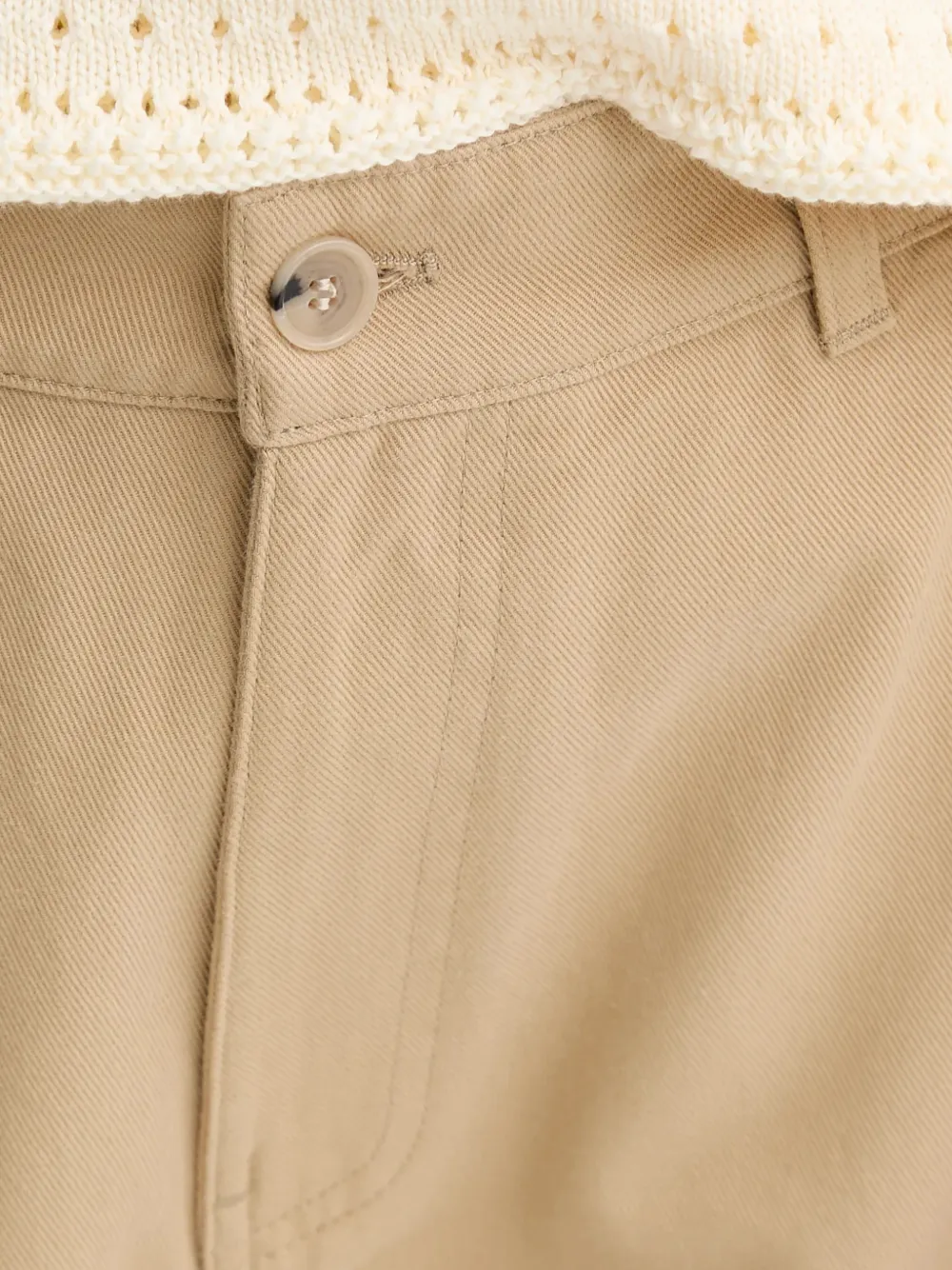 Бежевый, застежка на пуговицы, шлевки для ремня, прорезные карманы
