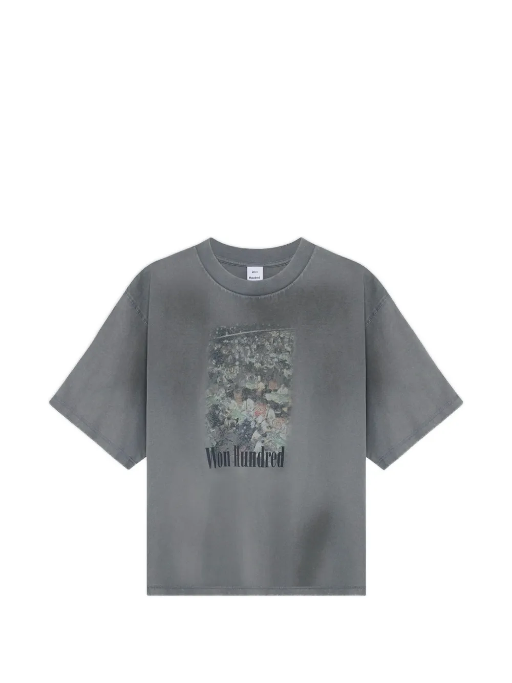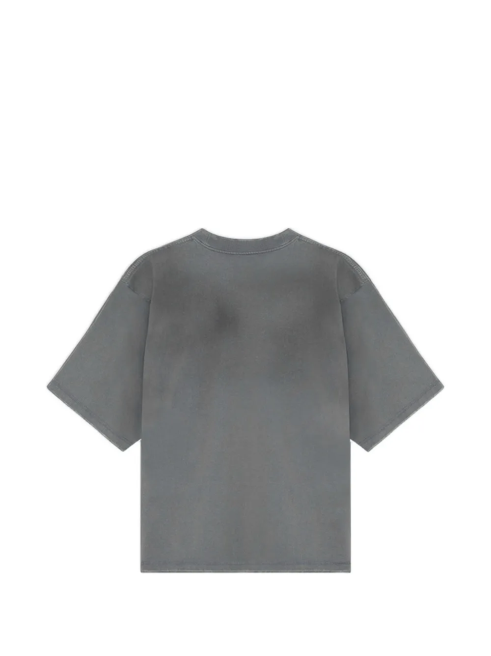 Серая футболка с графическим принтом, короткими рукавами и круглым вырезом