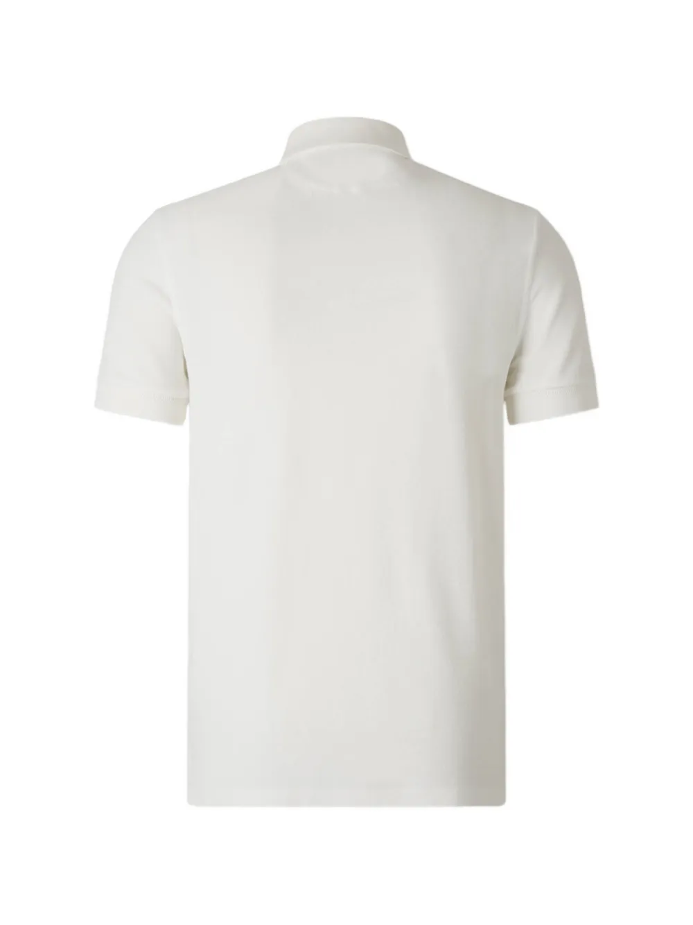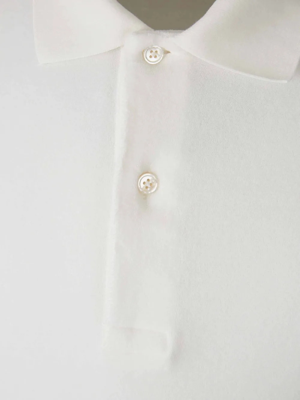 Белая футболка с короткими рукавами, застежкой на пуговицах, рубчатым воротником и манжетами