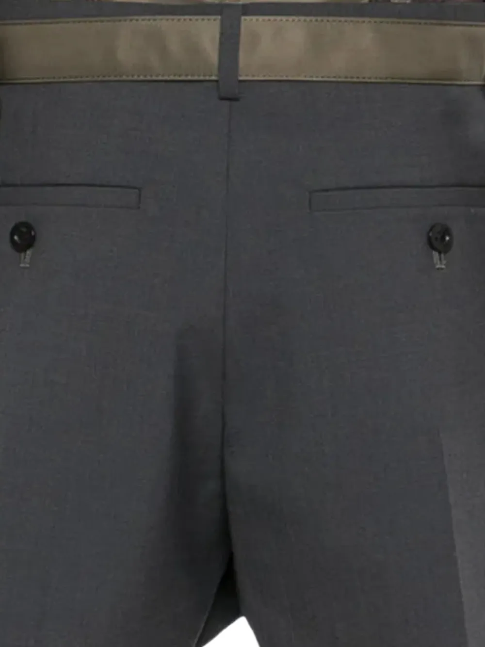 Серый и хаки ремень, задние прорезные карманы, отделка бокового шва