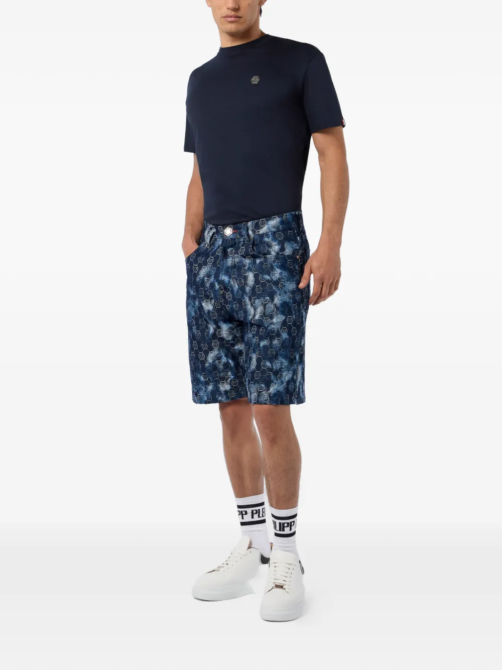 Джинсовые шорты с монограммным узором Philipp Plein, синий 101 013₽