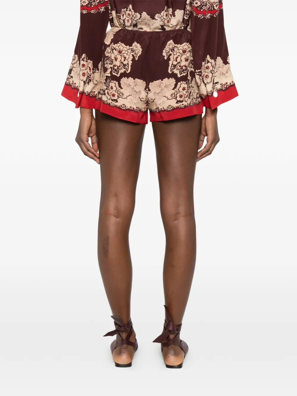 Красные шорты свободного кроя с цветочным принтом, контрастной отделкой и эластичным поясом