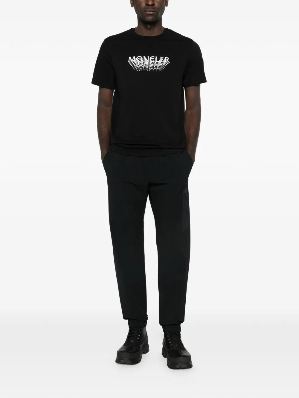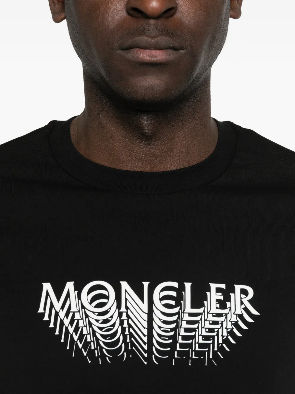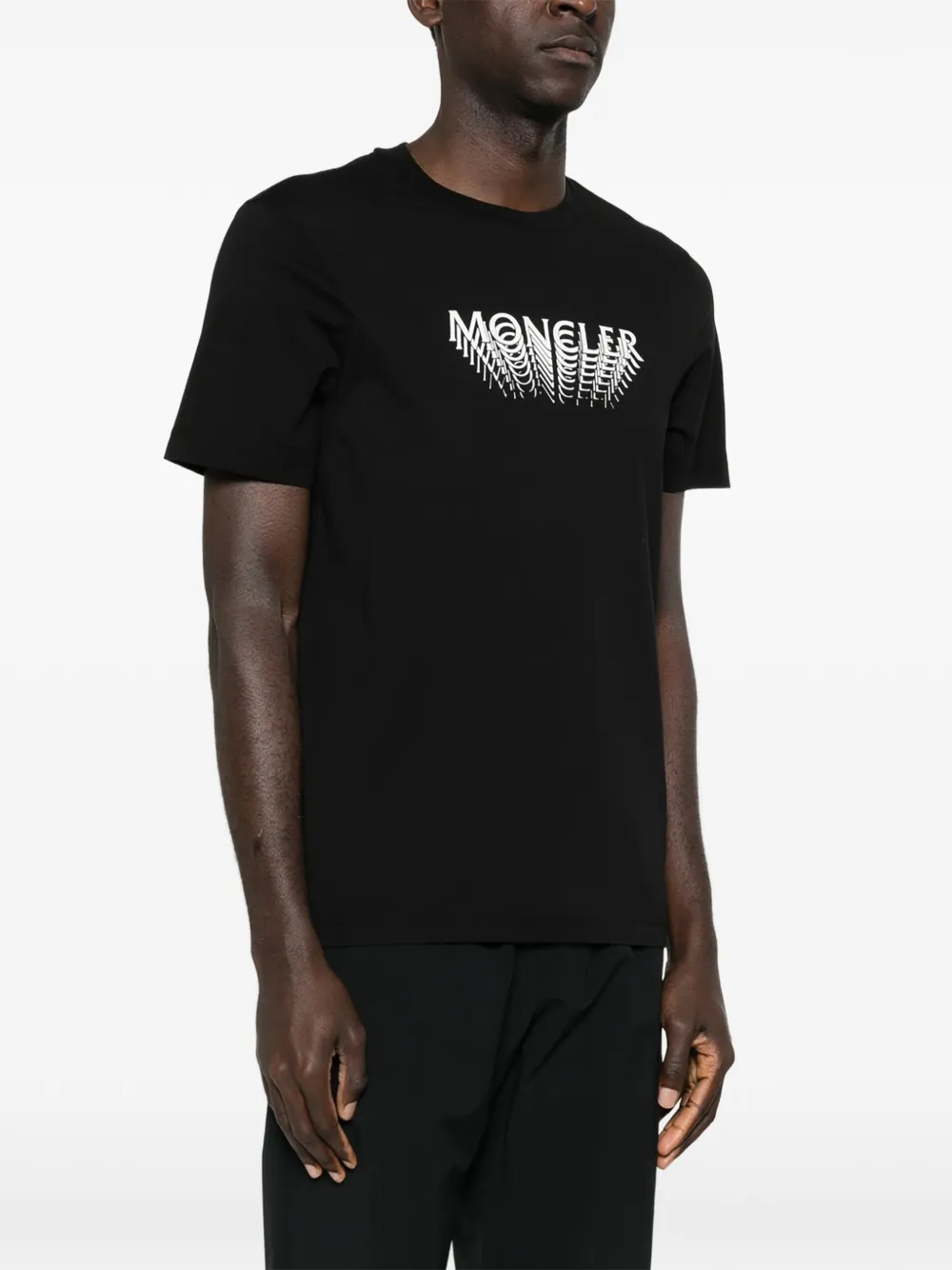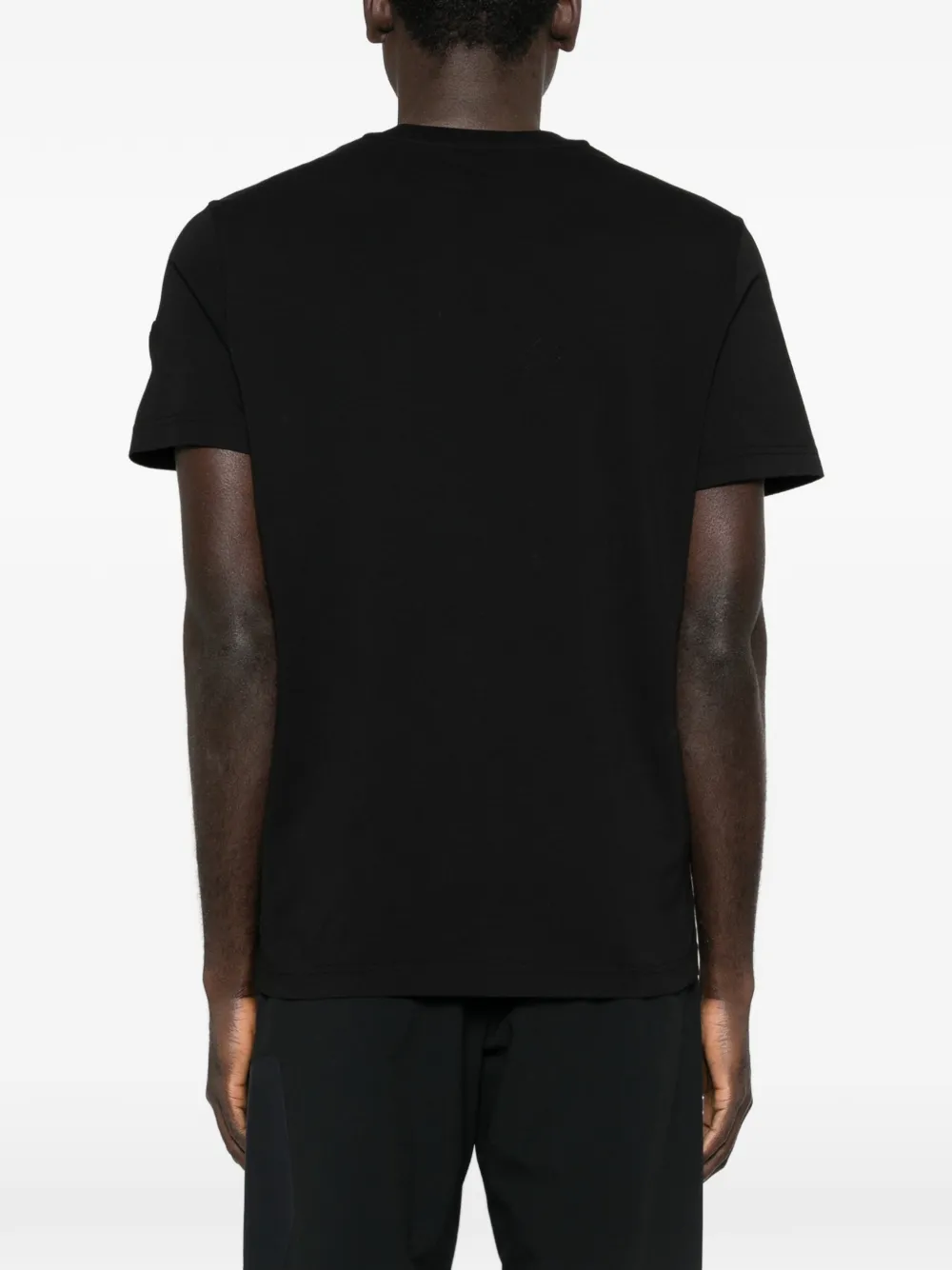 Черная хлопковая футболка с логотипом, короткими рукавами и круглым вырезом