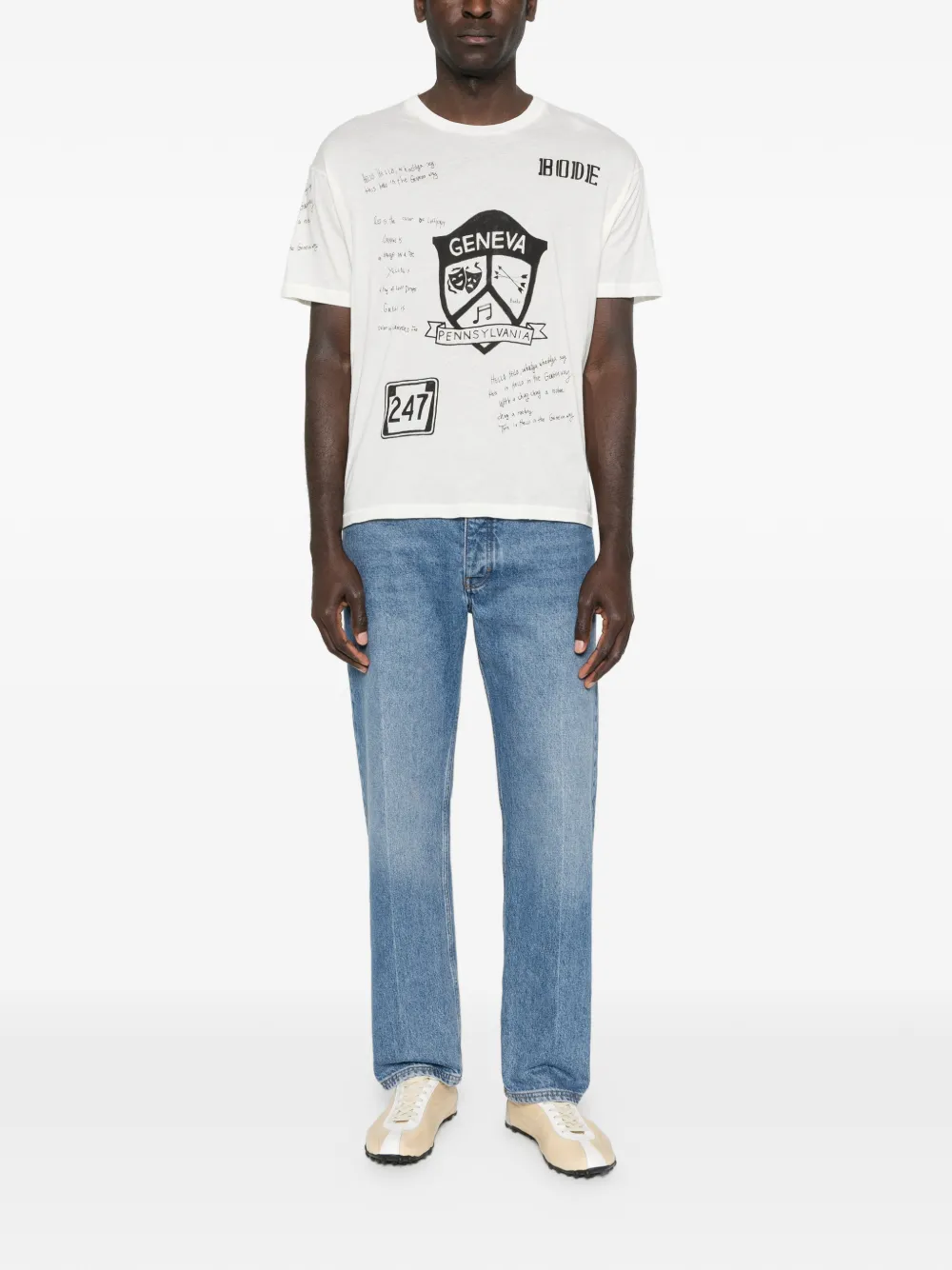 Кремовая футболка с графическим принтом, круглым вырезом и короткими рукавами