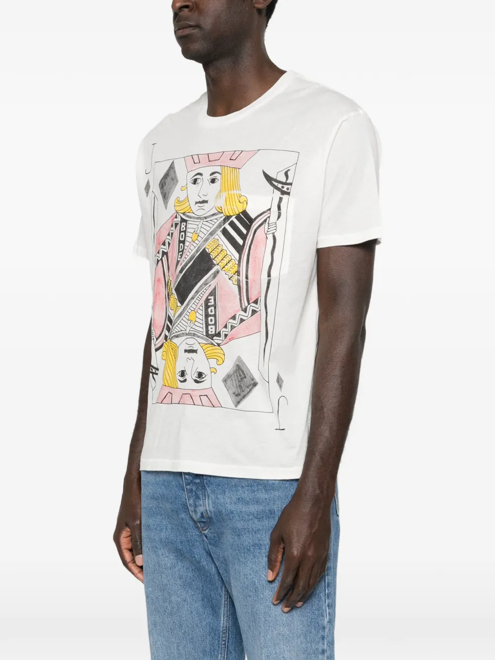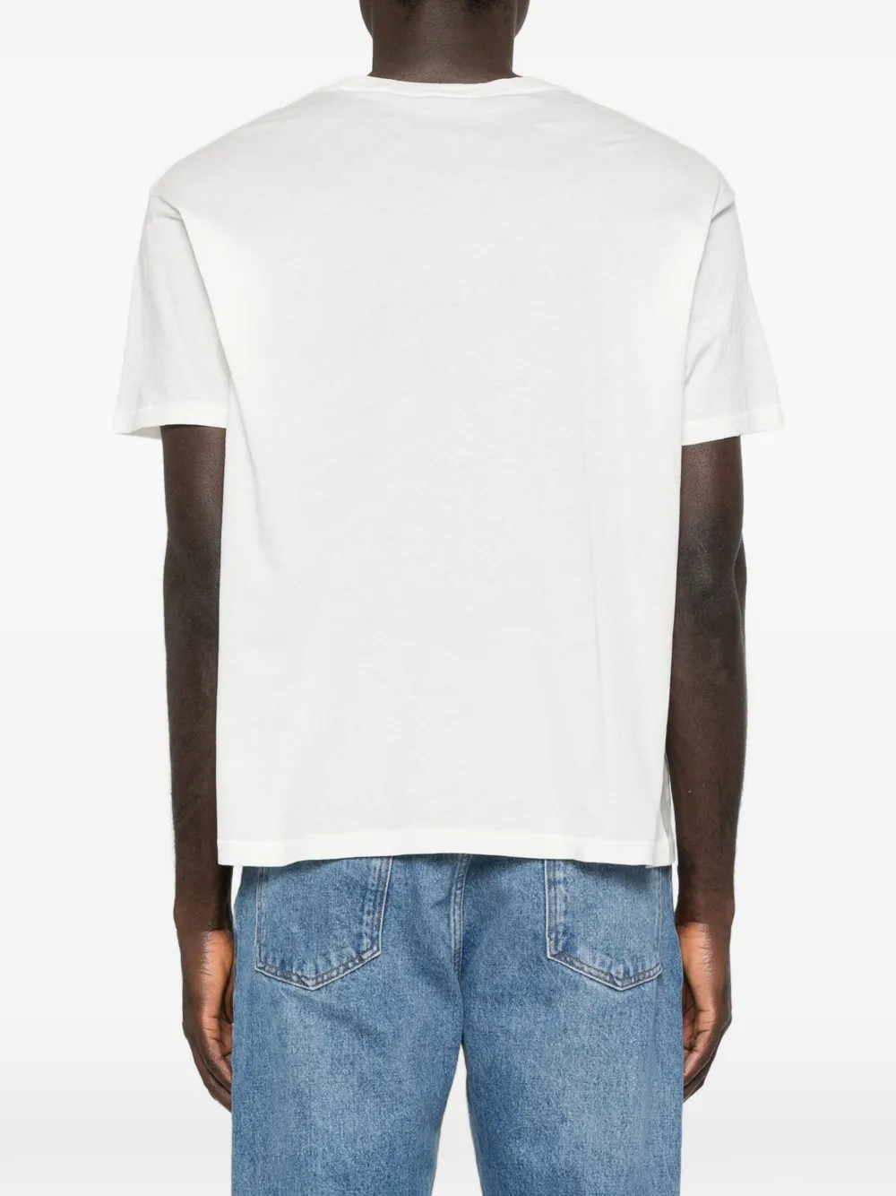 Кремовая футболка с графическим принтом, круглым вырезом, короткими рукавами и нагрудным карманом