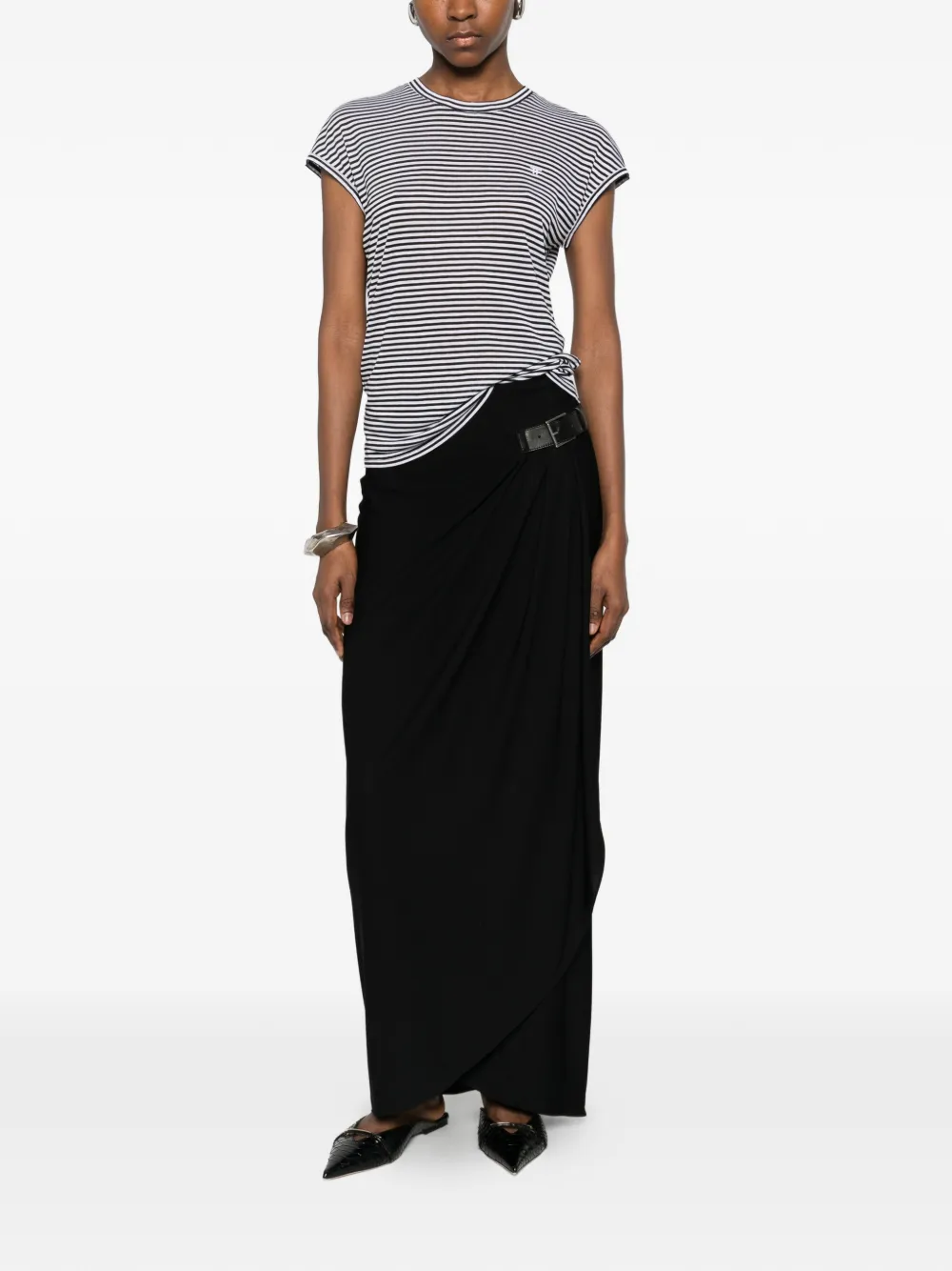 Черно-белая футболка в полоску с круглым вырезом, короткими рукавами и логотипом