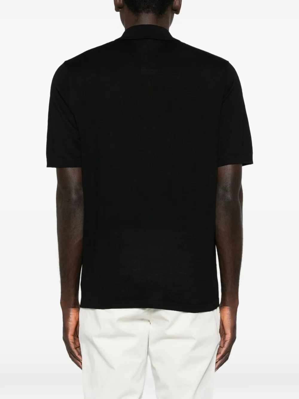 Черные короткие рукава, классический воротник, застежка на пуговицах, ровный низ