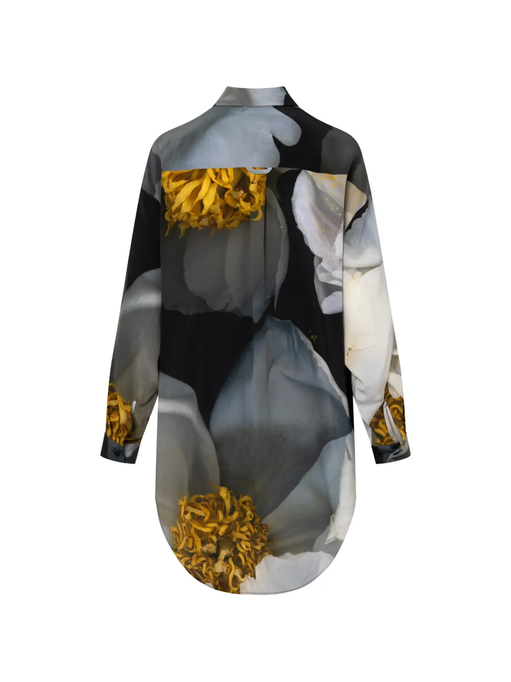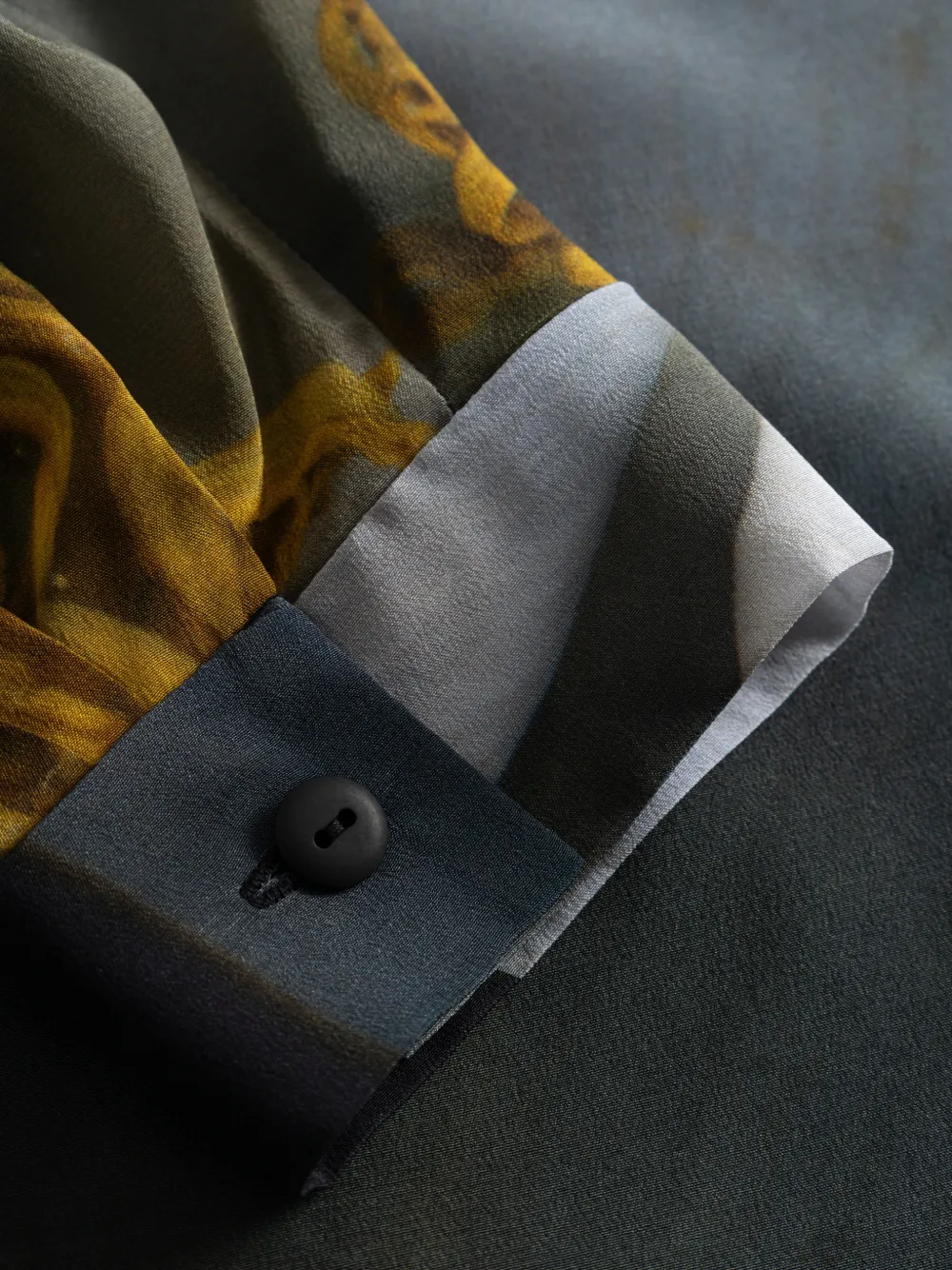 Черно-белый принт, нагрудный карман, застежка на пуговицы, длинные рукава, манжеты на пуговицах, закругленный край