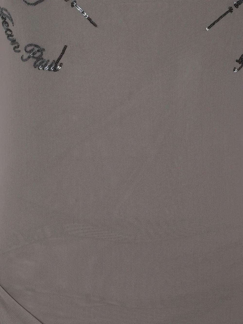 Темно-серый облегающий топ с двойным слоем, вышивкой и конструкцией без застежек