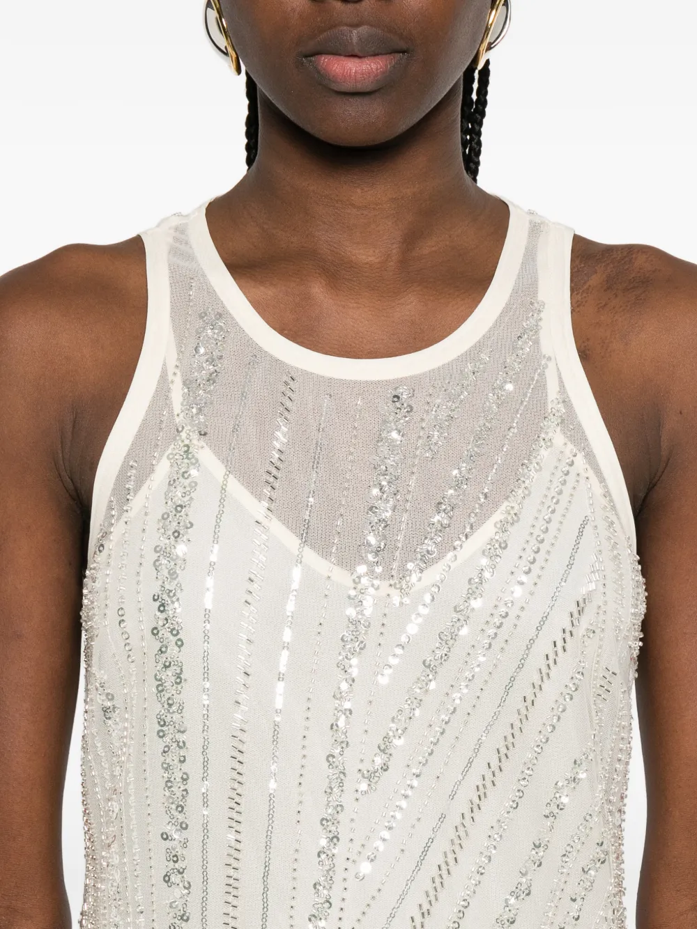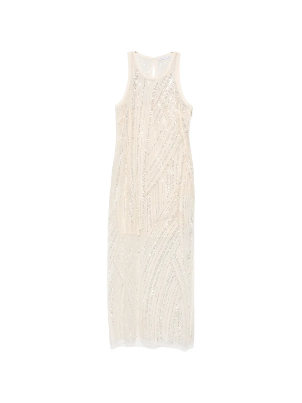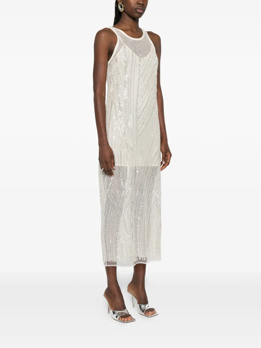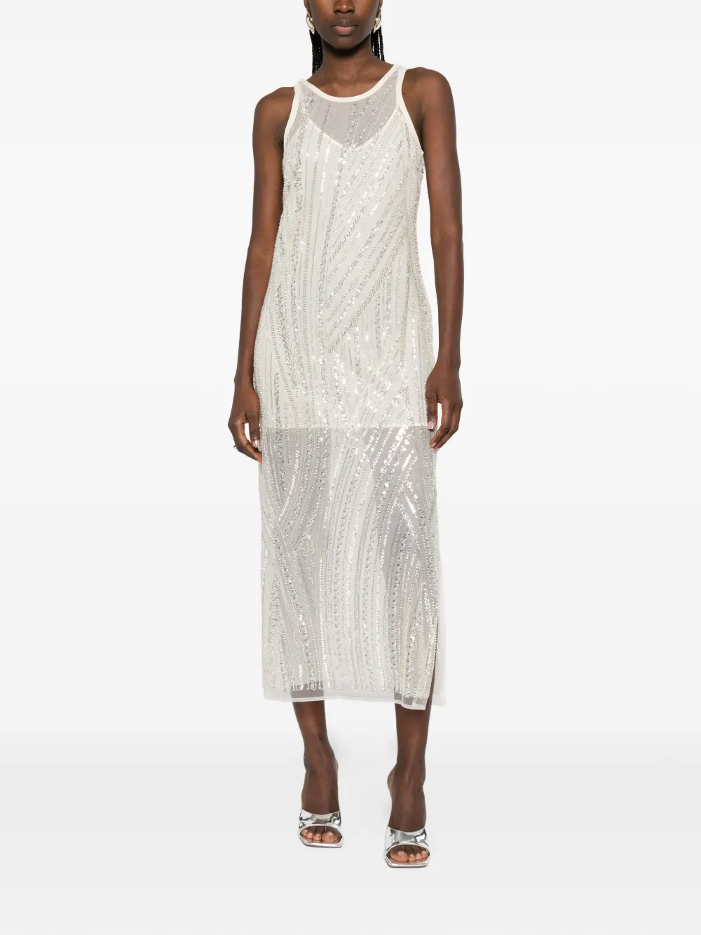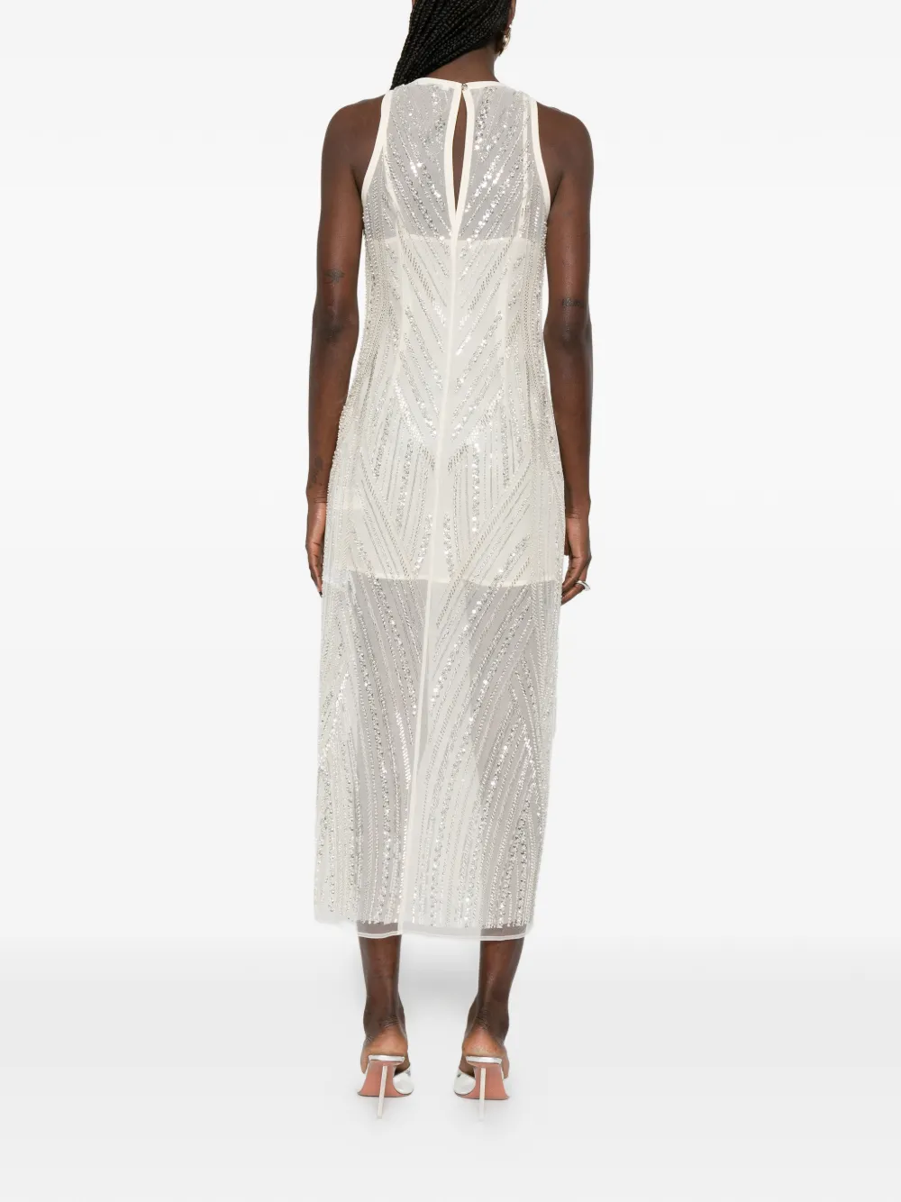 Айвори платье миди без рукавов с круглым вырезом, вышивкой и украшением кристаллами